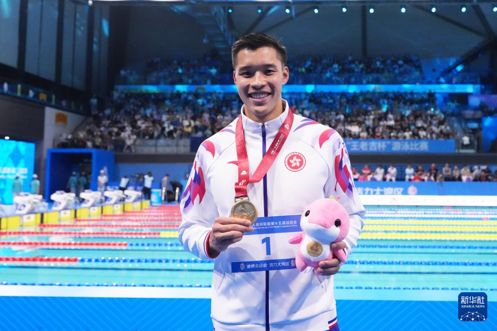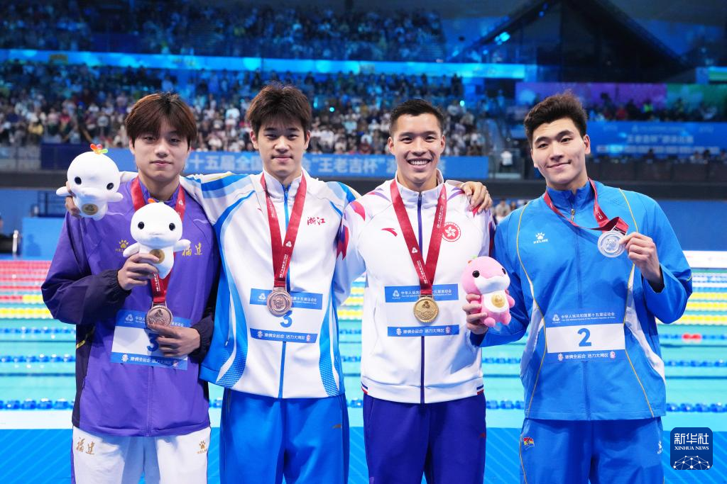 当日,第十五届全国运动会游泳男子50米自由泳决赛在深圳举行。