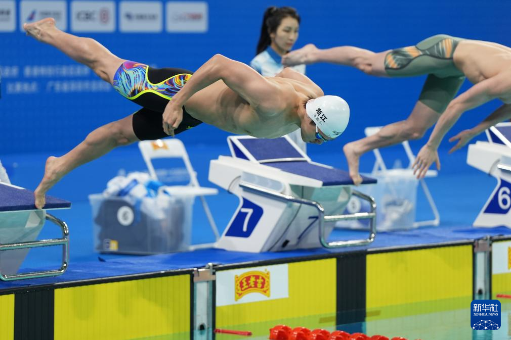 11月16日,浙江队选手潘展乐在比赛中出发。他最终获得并列季军。