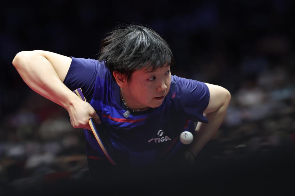 11月15日,黑龙江队选手王曼昱在比赛中回球。新华社记者 梁旭 摄