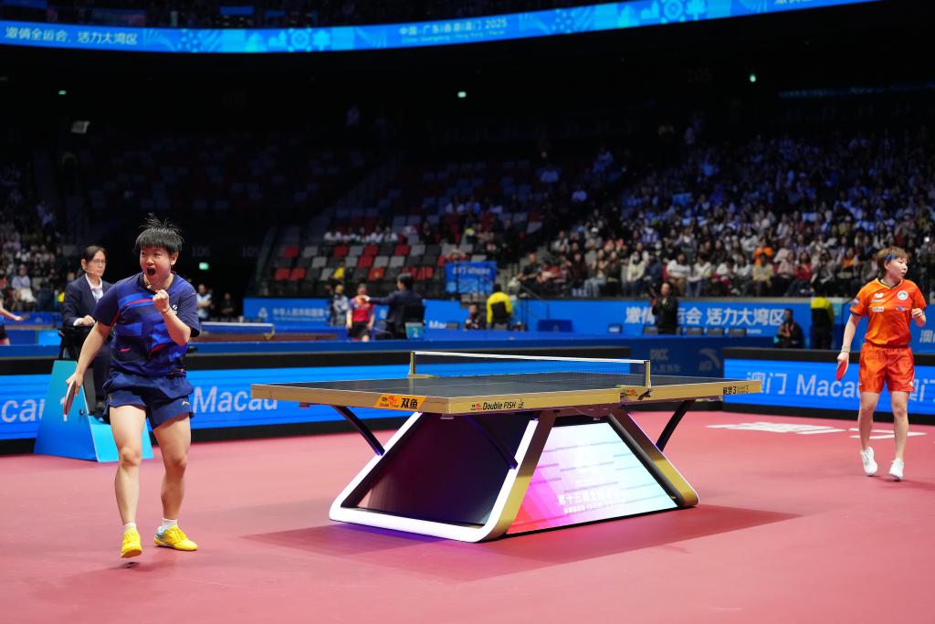 新华社澳门11月15日电(记者岳冉冉、李春宇)15日,第十五届全运会乒乓球女单半决赛结束,河北队孙颖莎、黑龙江队王曼昱晋级决赛。她们分别以4:1、4:0的比分战胜了澳门队朱雨玲和山东队陈梦。