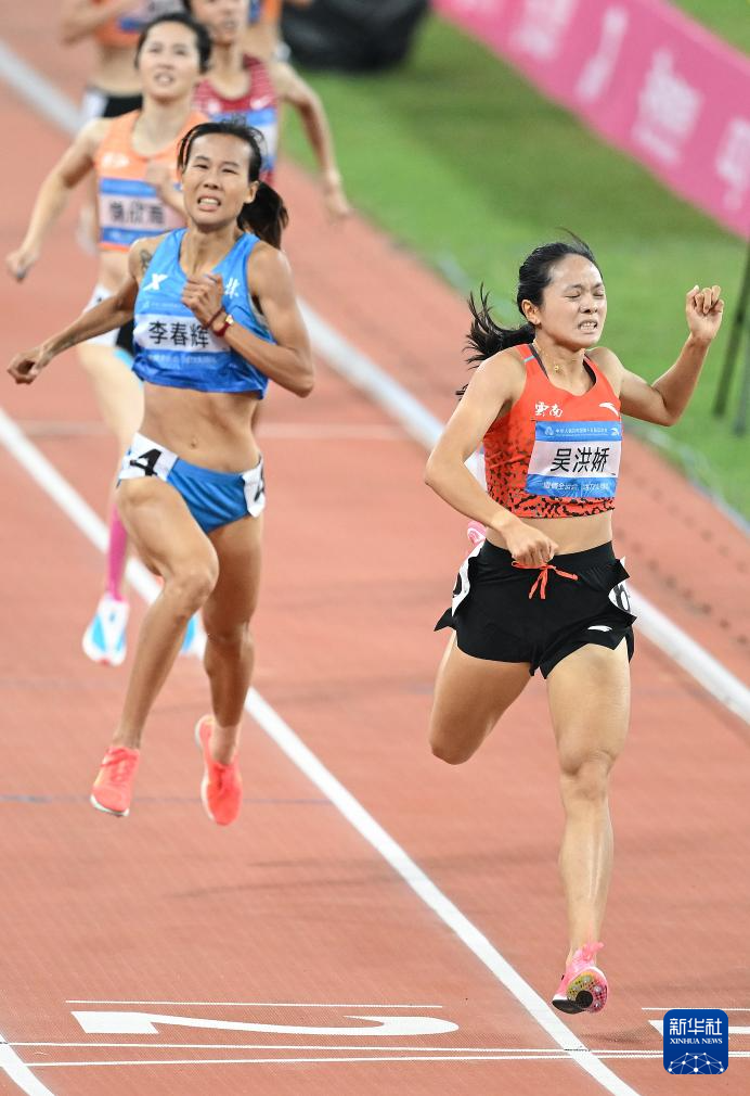 11月16日,云南队选手吴洪娇(右)在比赛中冲线。她夺得冠军。