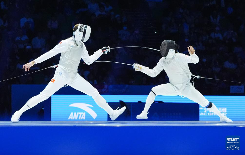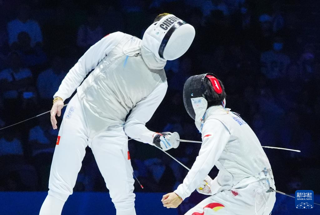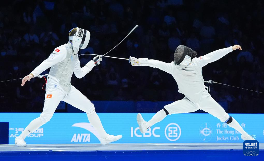 11月16日,香港队选手张家朗(左)和个人选手曾昭然在比赛中。