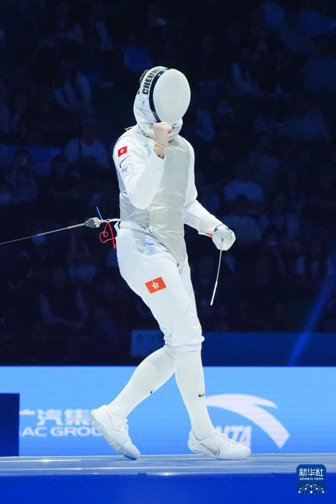 11月16日,香港队选手张家朗在比赛中庆祝得分。