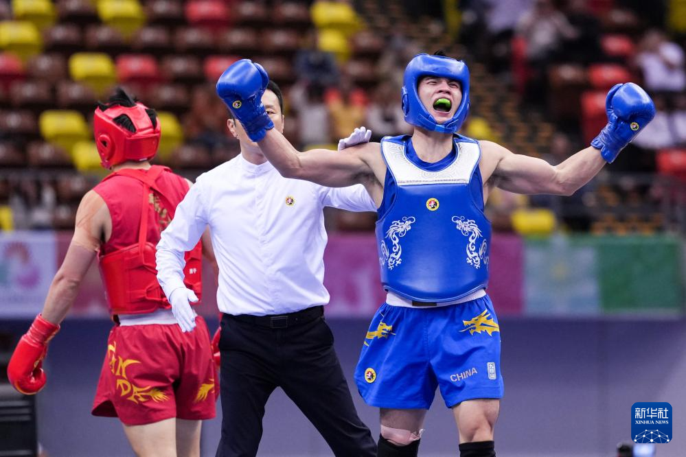 当日,在湛江进行的第十五届全国运动会武术散打男子75公斤级半决赛中,重庆队选手何烽2比1战胜北京体育大学队选手金根生,晋级决赛。