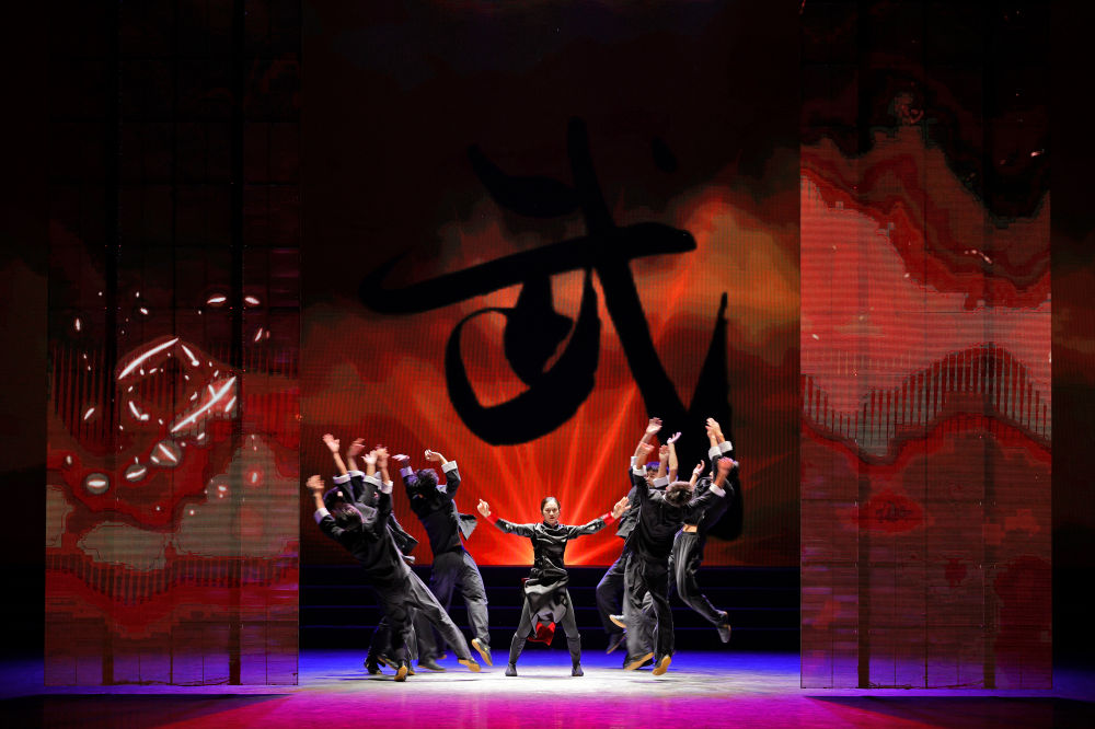 2023年8月6日,来自西华大学的演员在表演《武韵》。当日,由国家体育总局主办的“中华体育精神颂”成都大运站中国功夫专场展演暨优秀运动员交流活动在大运村艺术中心举行。新华社记者 沈伯韩 摄