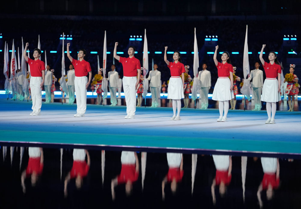 11月9日,演员在十五运会开幕式现场表演。新华社记者 江汉 摄