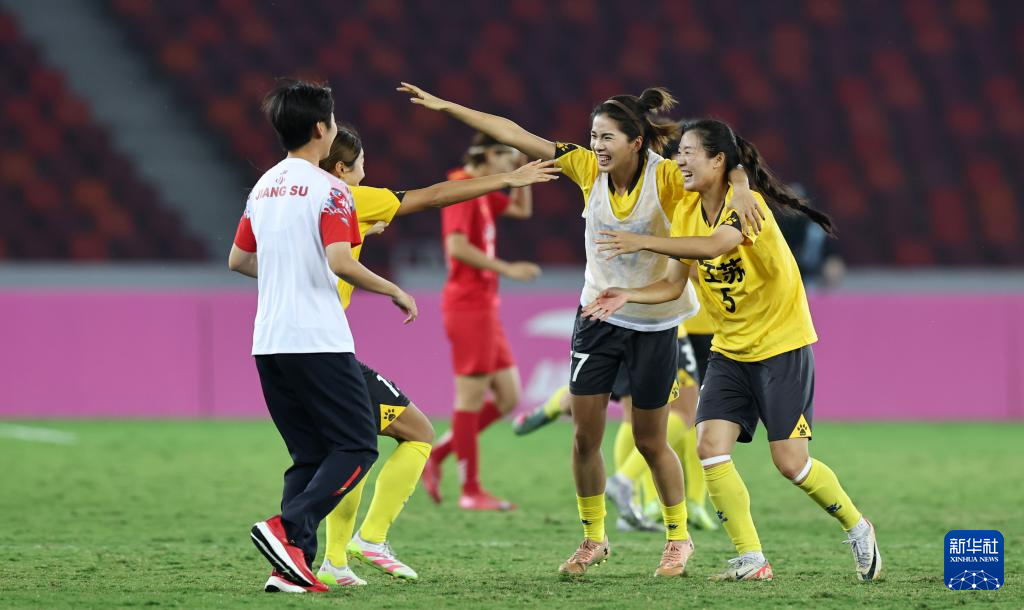 当日,在广东佛山进行的第十五届全国运动会足球女子成年组金牌赛中,江苏队1比0战胜湖北队,夺得冠军。