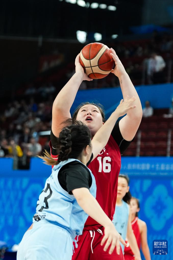 11月16日,北京队球员王雨桐(上)在比赛中上篮。