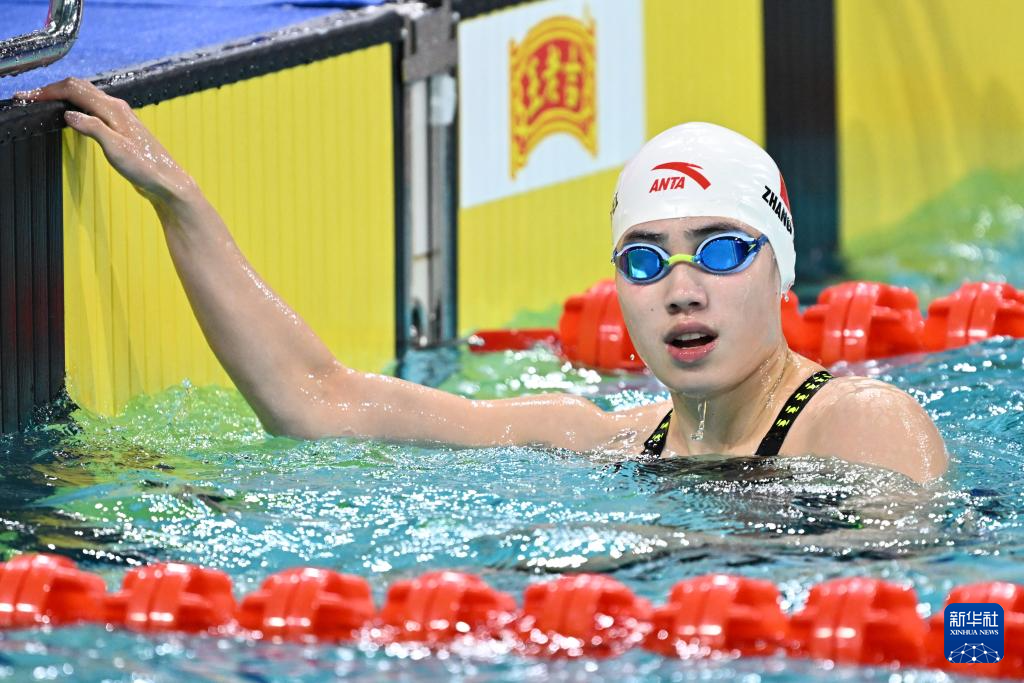 11月16日,江苏队选手张雨霏在比赛后致意。