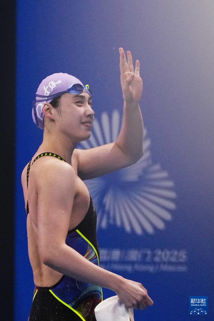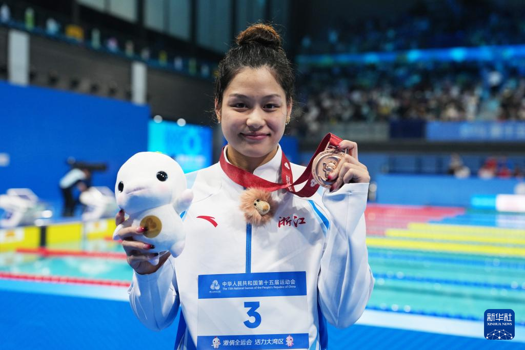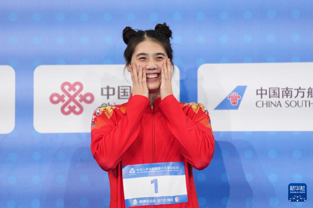 当日,第十五届全国运动会游泳女子50米蝶泳决赛在深圳举行。