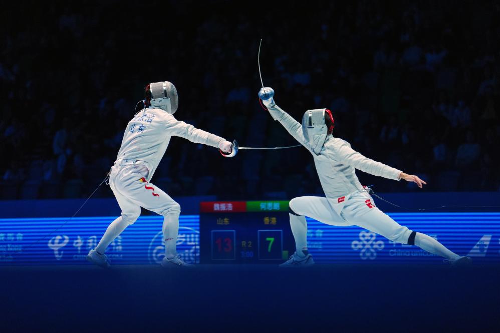 新华社香港11月15日电(黄茜恬、周万鹏)第十五届全国运动会击剑项目15日在香港启德体艺馆正式开赛,当日共决出两枚金牌,福建队林声击败广东队吴采遥夺得女子重剑个人赛冠军,山东队魏振浩夺得男子佩剑个人赛金牌。