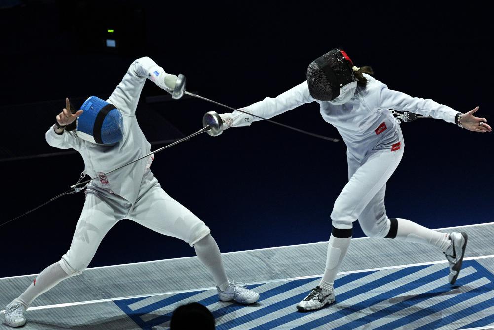 11月15日,山东队选手魏振浩(左)和香港队选手何思朗在比赛中。新华社记者 朱炜 摄