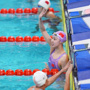 ↑湖北队选手彭旭玮在比赛后。新华社记者 杜宇 摄
