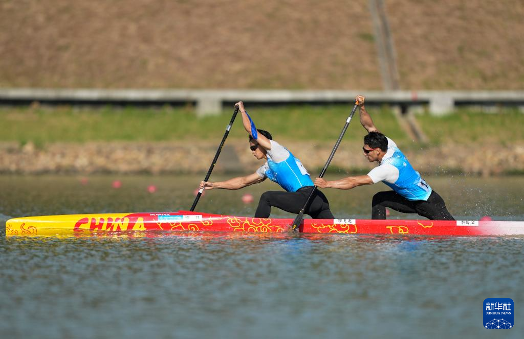 当日,第十五届全国运动会皮划艇静水项目男子500米双人划艇决赛在广州举行。