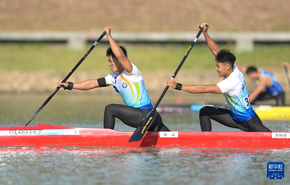 11月17日,云南队选手刘浩(左)/董树祥在男子500米双人划艇决赛A中。最终,他们获得季军。