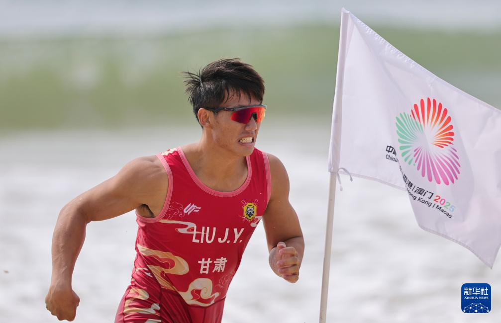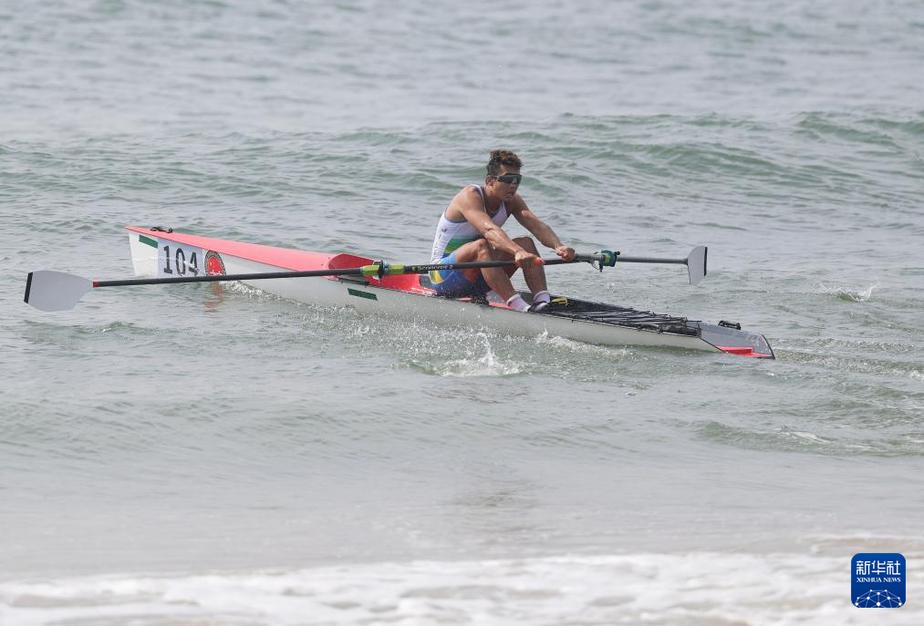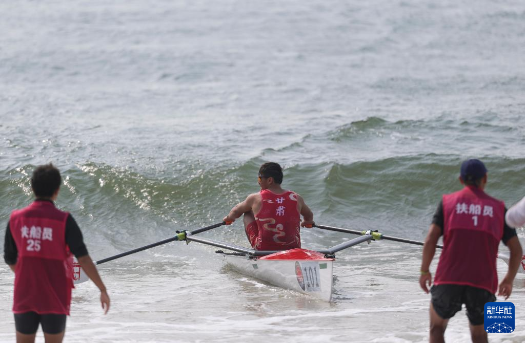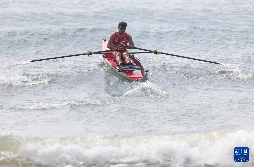 当日,第十五届全国运动会海岸赛艇男子单人双桨决赛在广东阳江举行。