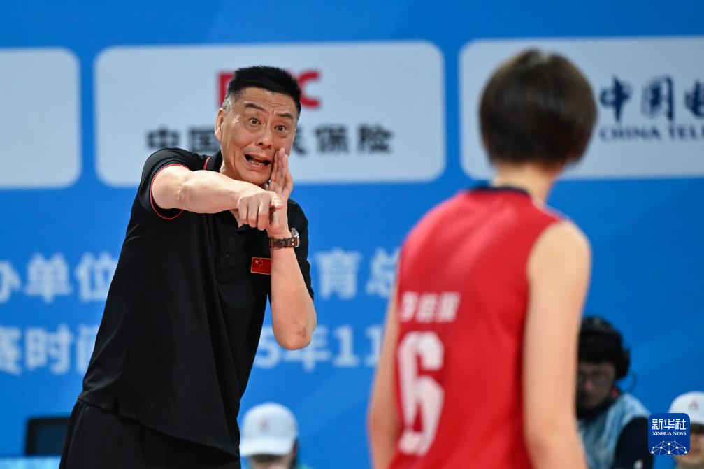 11月17日,河北队教练张忠伟(左)在比赛中指导。