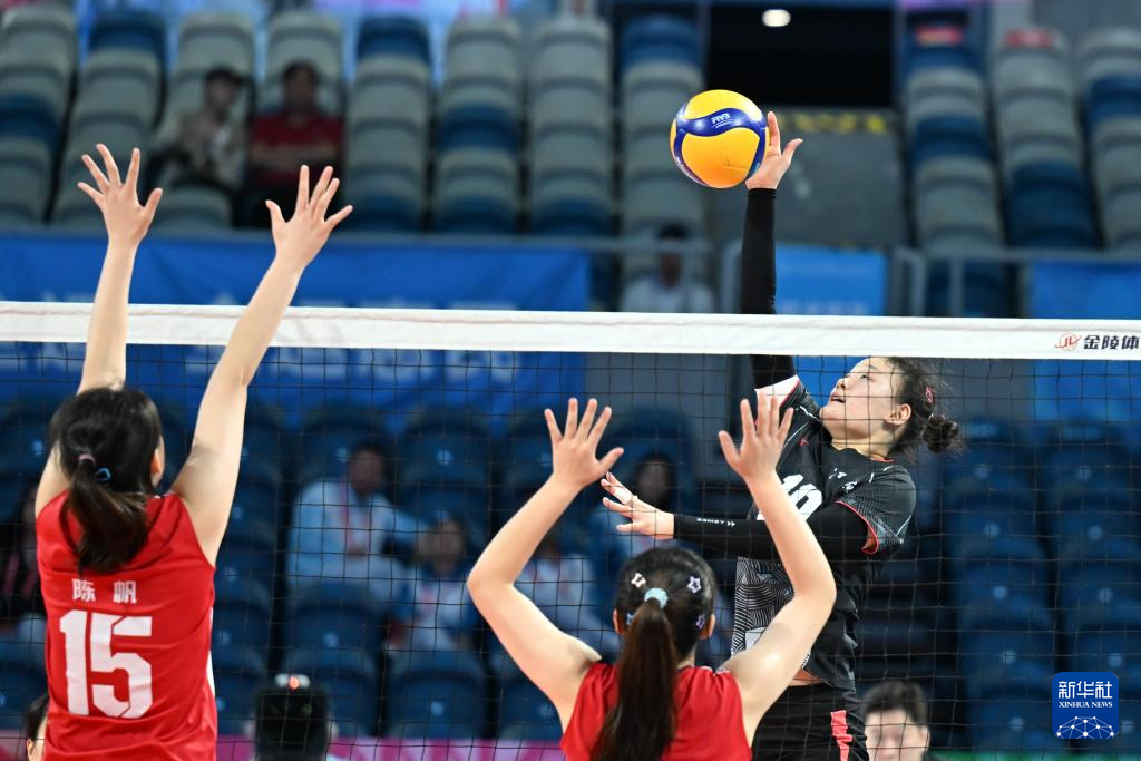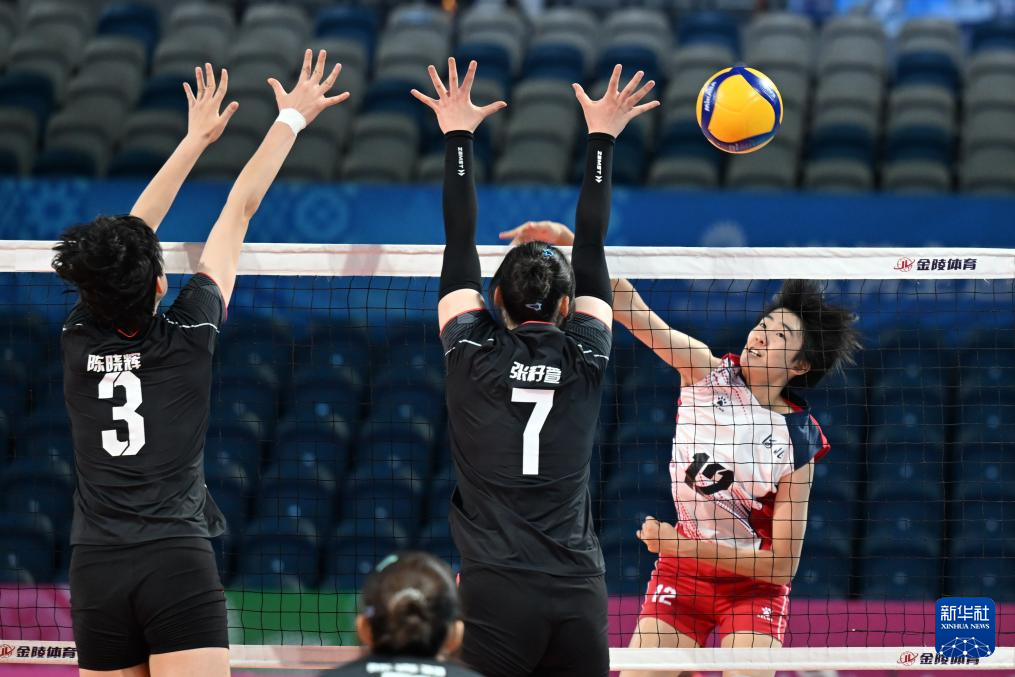 当日,在广东省深圳市举行的第十五届全国运动会排球女子18岁以下组1-4名半决赛中,江苏队3比0战胜河北队。