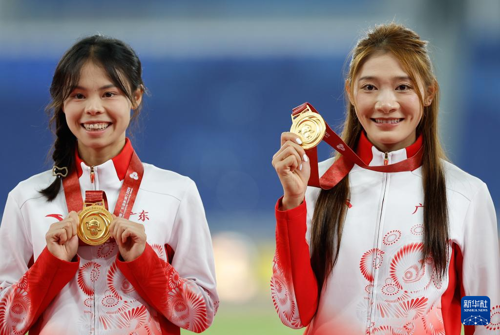 当日,第十五届全国运动会田径4X400米混合接力颁奖仪式在广州举行。