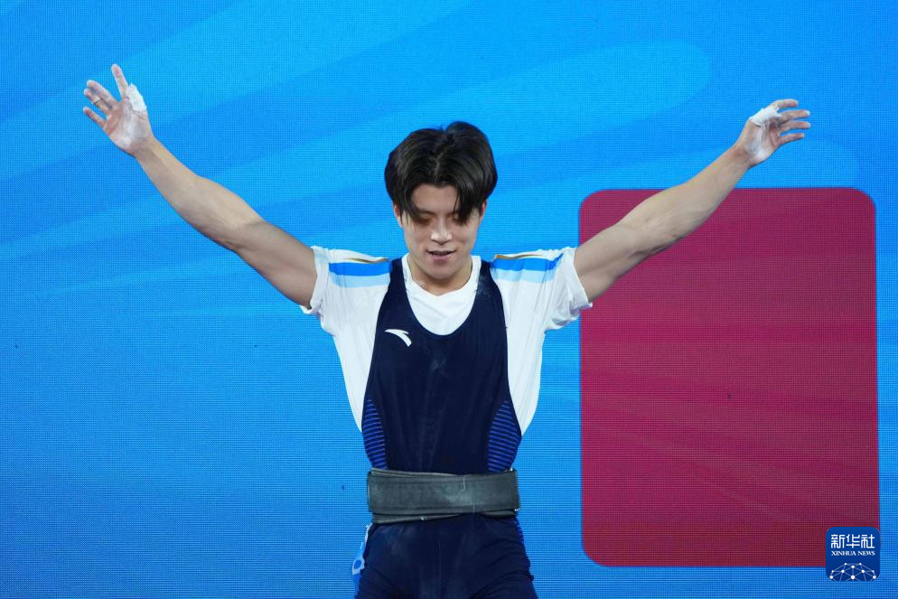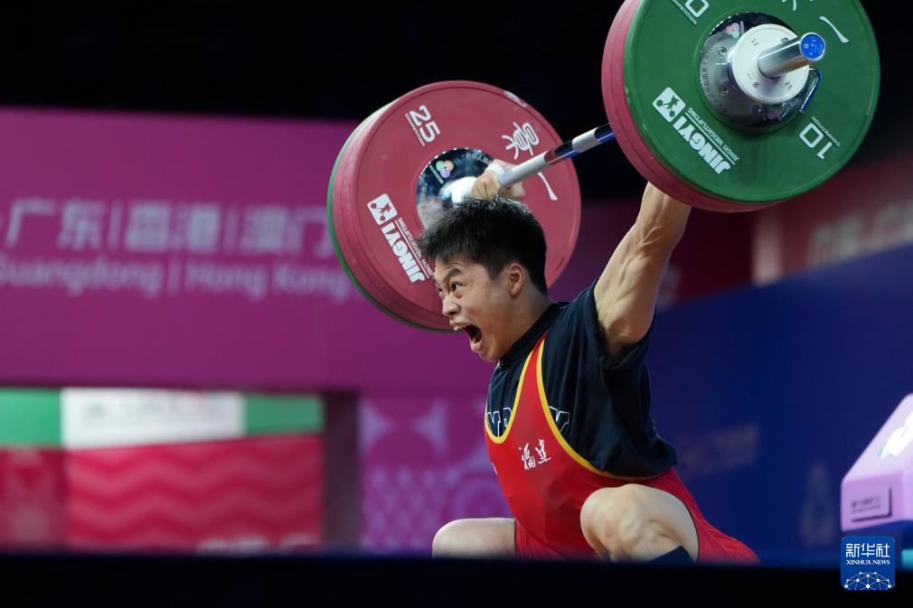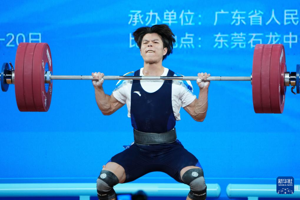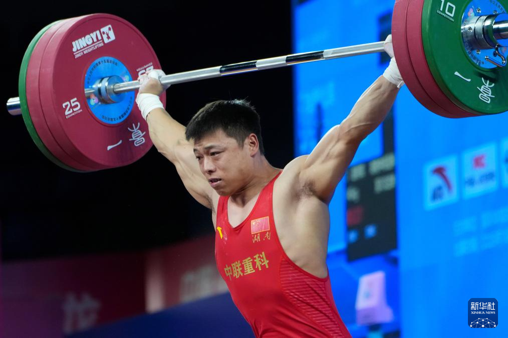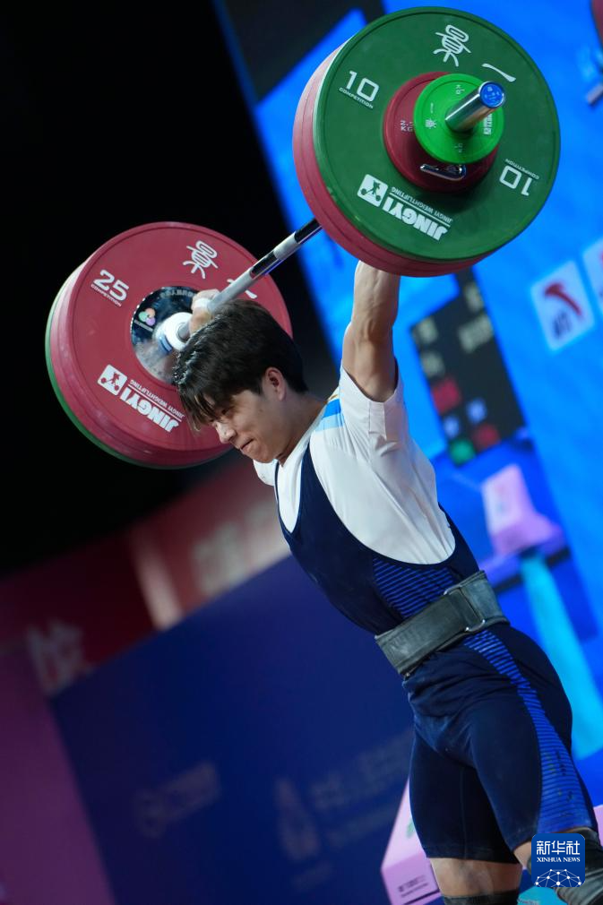11月17日,浙江队选手陈戬在抓举比赛中。最终,他获得冠军。