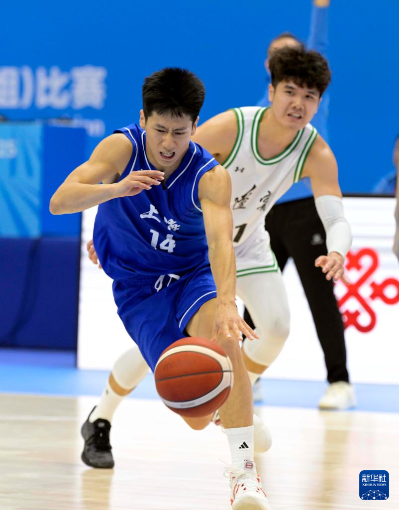 11月17日,上海队球员陈天灿(右)在比赛中进攻。