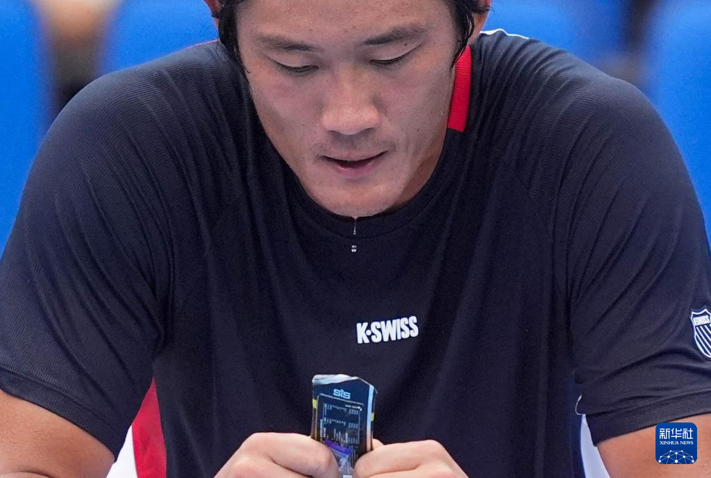 11月17日,张之臻在比赛暂停时休息。