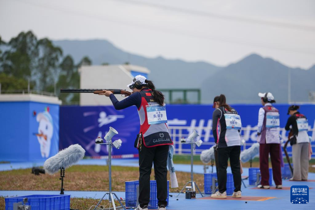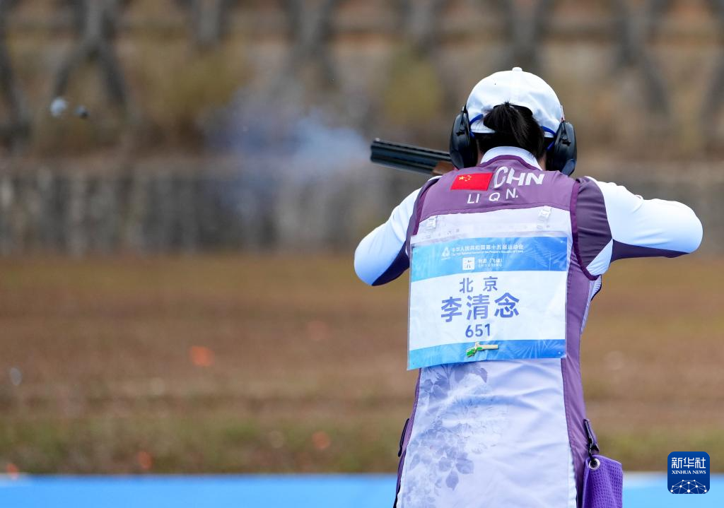 当日,第十五届全国运动会射击项目女子飞碟多向资格赛在广州举行。