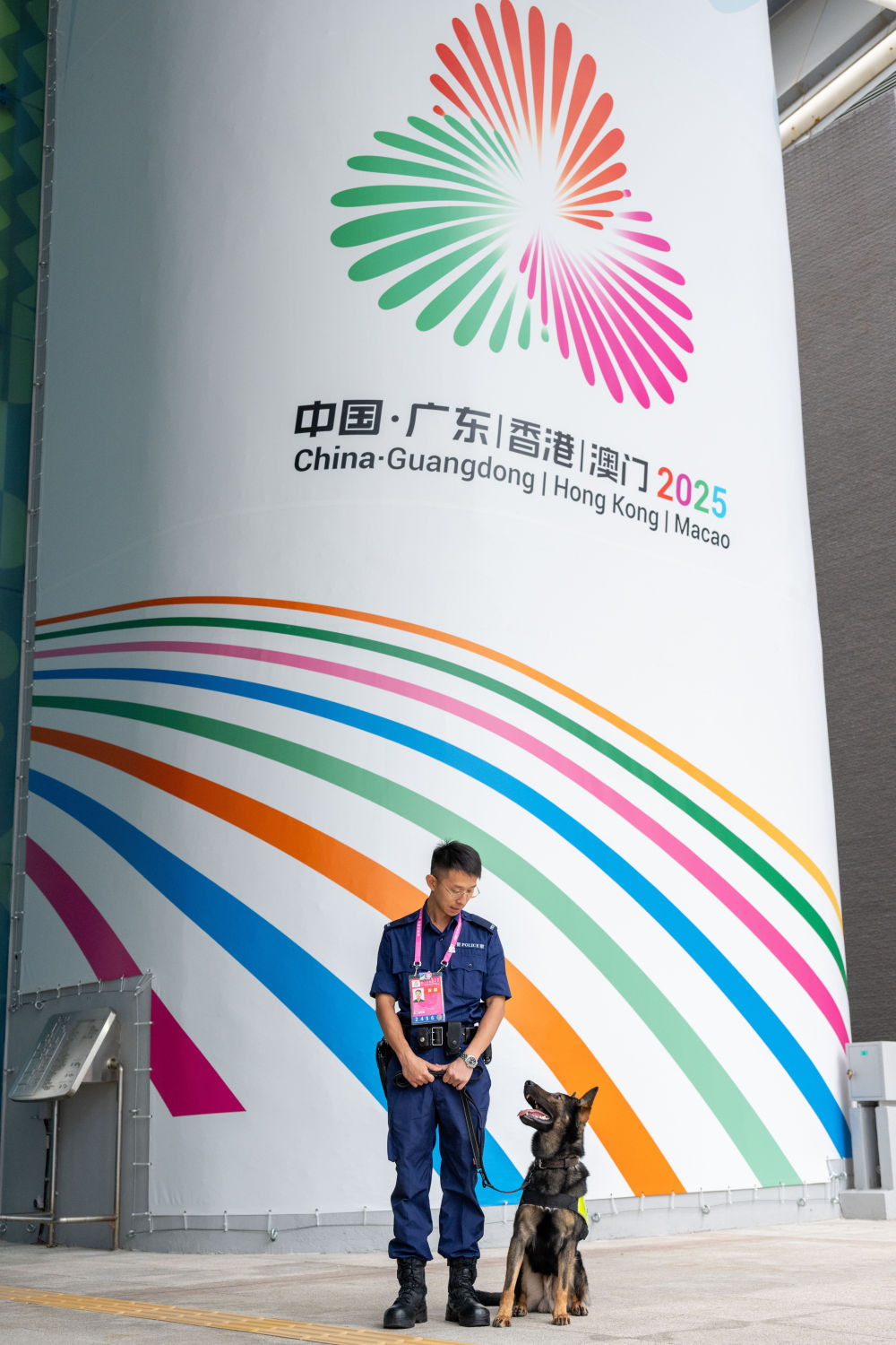 不只是Rich,还有70多只和它一样的警犬,在十五运会香港赛区的各个场馆执行着安保任务。在它们身后,是香港与内地紧密协同的安全网络,是一座城市以最高标准参与全运会的态度,也是大湾区共同守护这一体育盛会的真实图景。