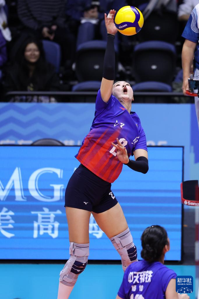 11月18日,福建队球员郑欣怡在比赛中接球。