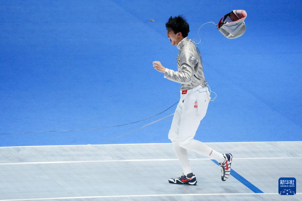 11月18日,上海队选手朱子皓在比赛后庆祝胜利。