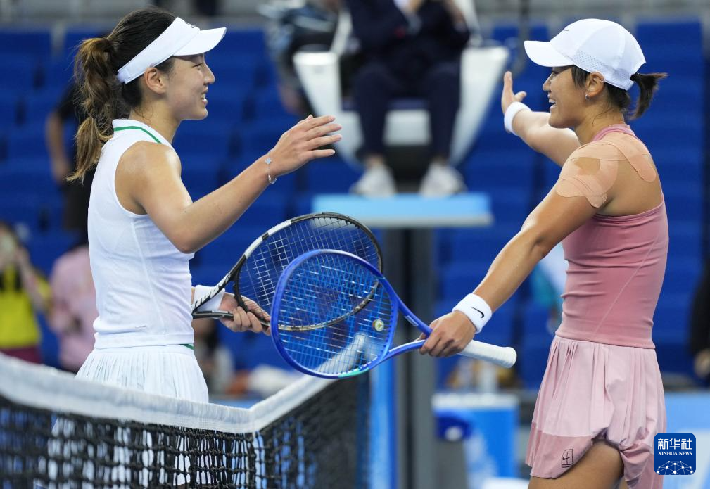11月18日,广东队选手王欣瑜(左)与天津队选手王曦雨在比赛后相互致意。