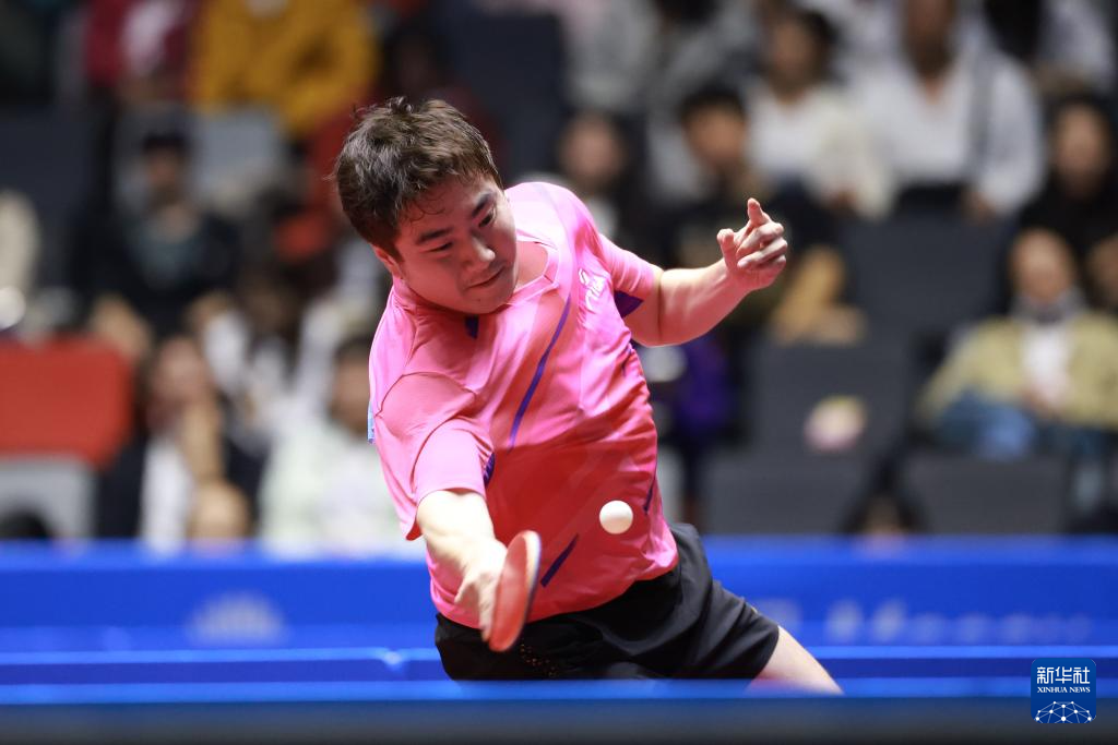 11月17日,河北队选手梁靖崑在比赛中回球。