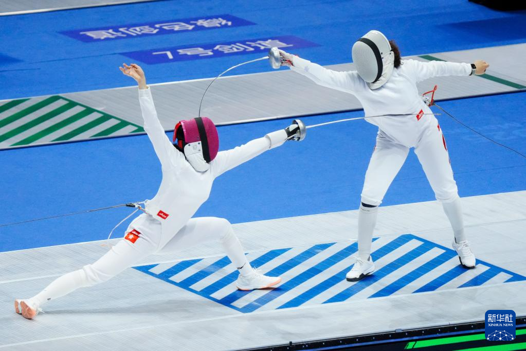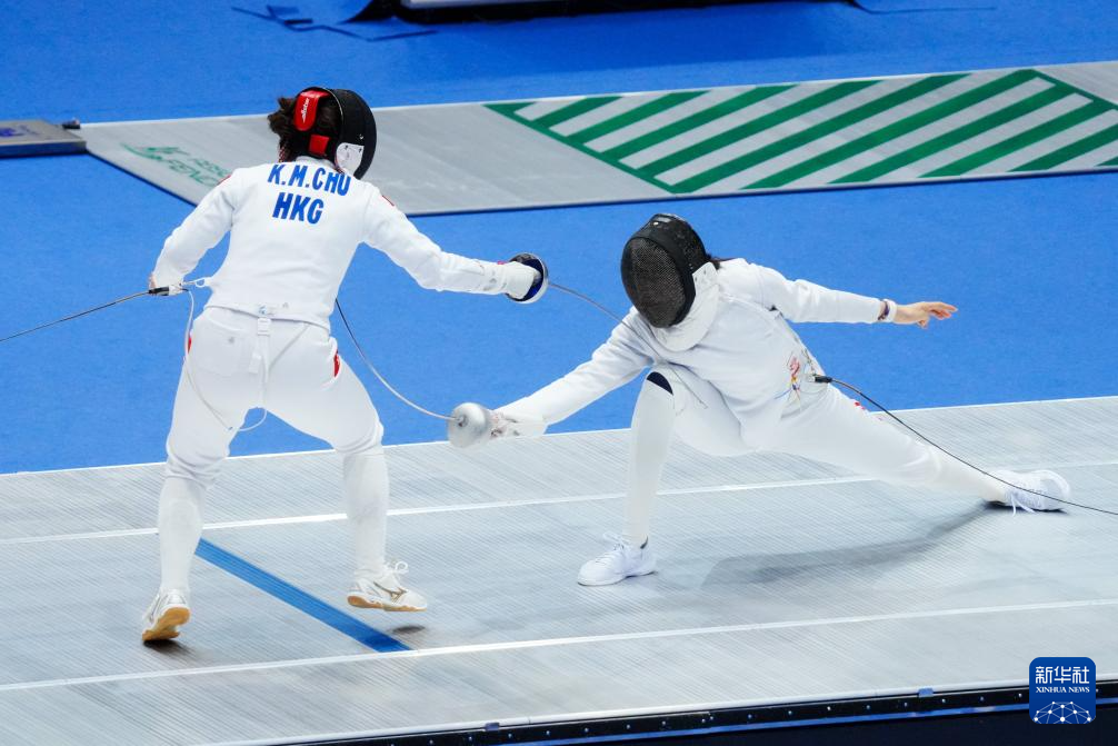 11月18日,北京队选手梁馨艺(右)和香港队选手朱嘉望在比赛中。