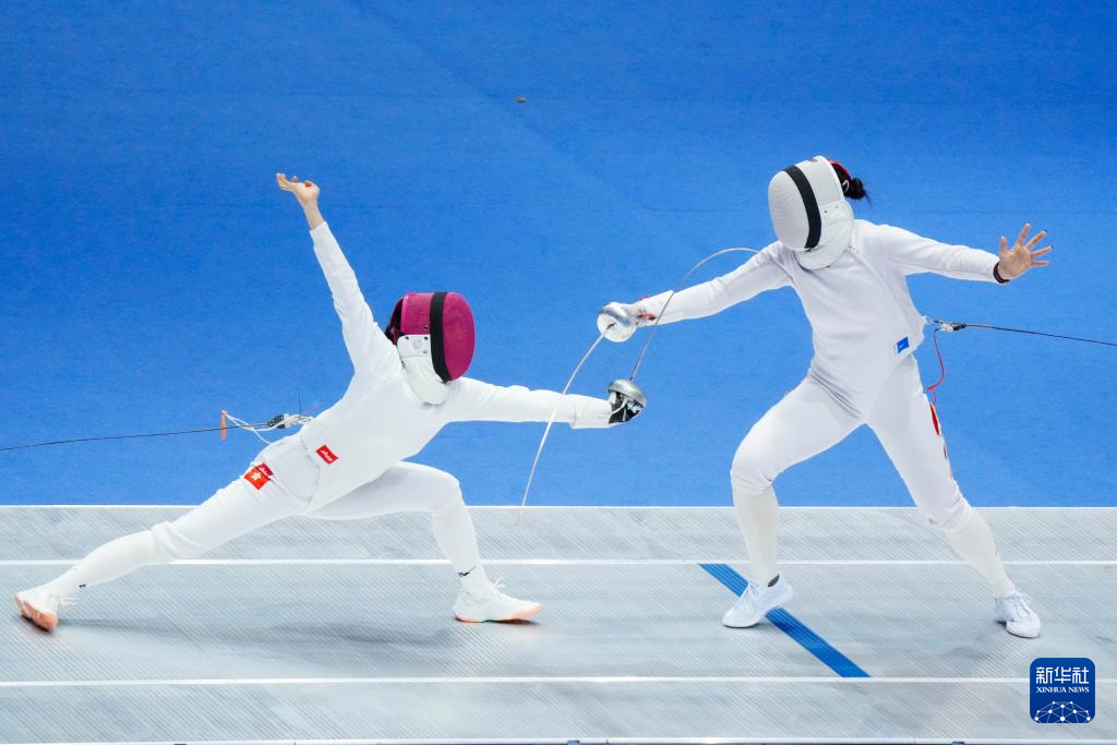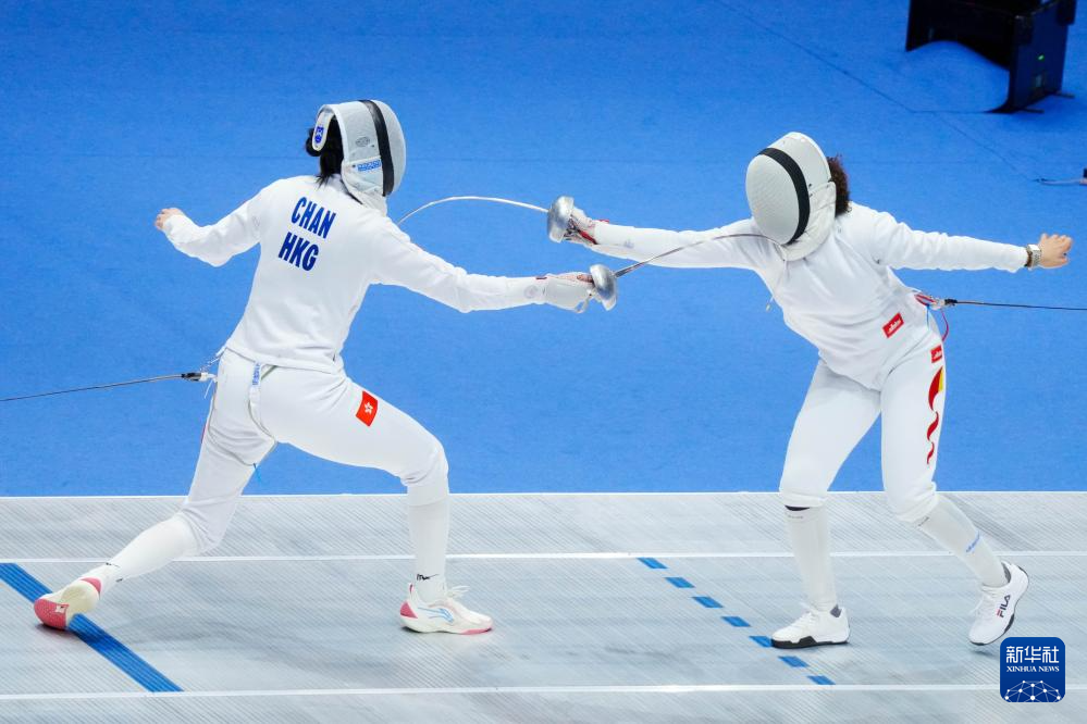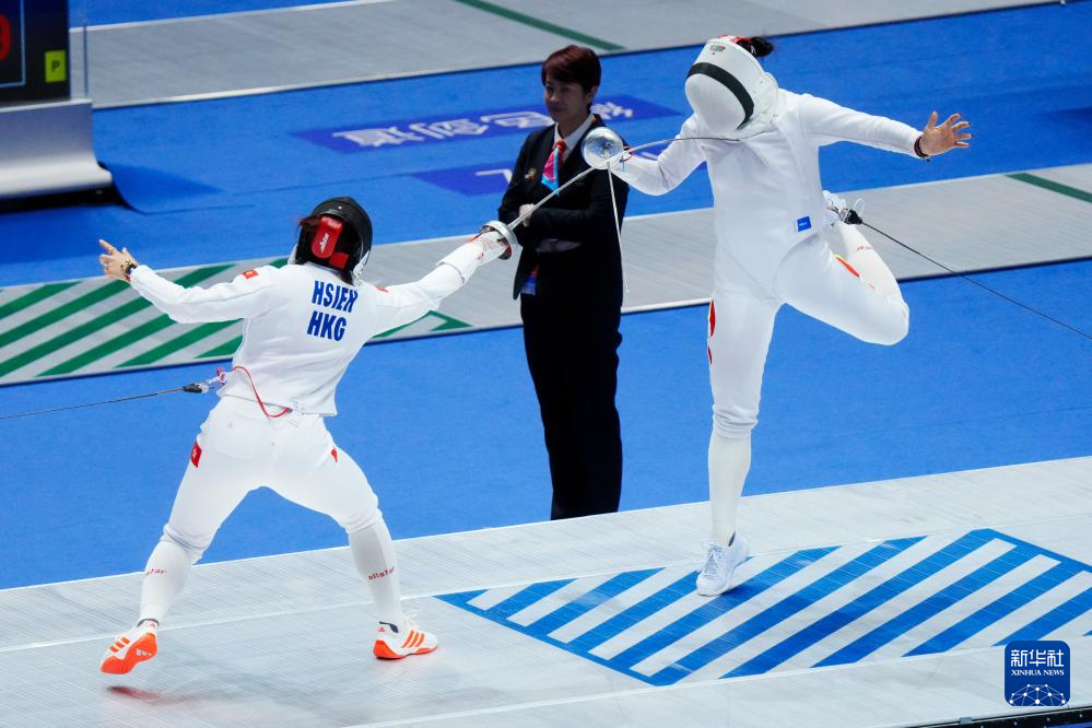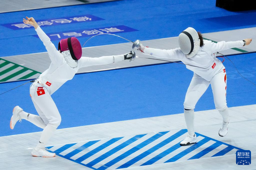 11月18日,北京队选手梁馨艺(右)和香港队选手佘缮妡在比赛中。