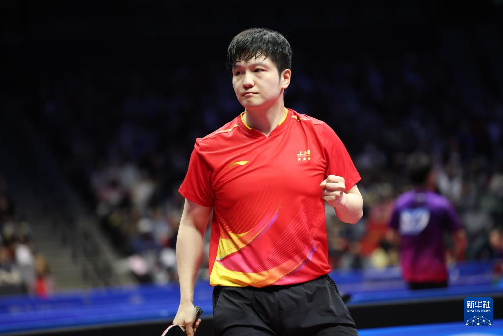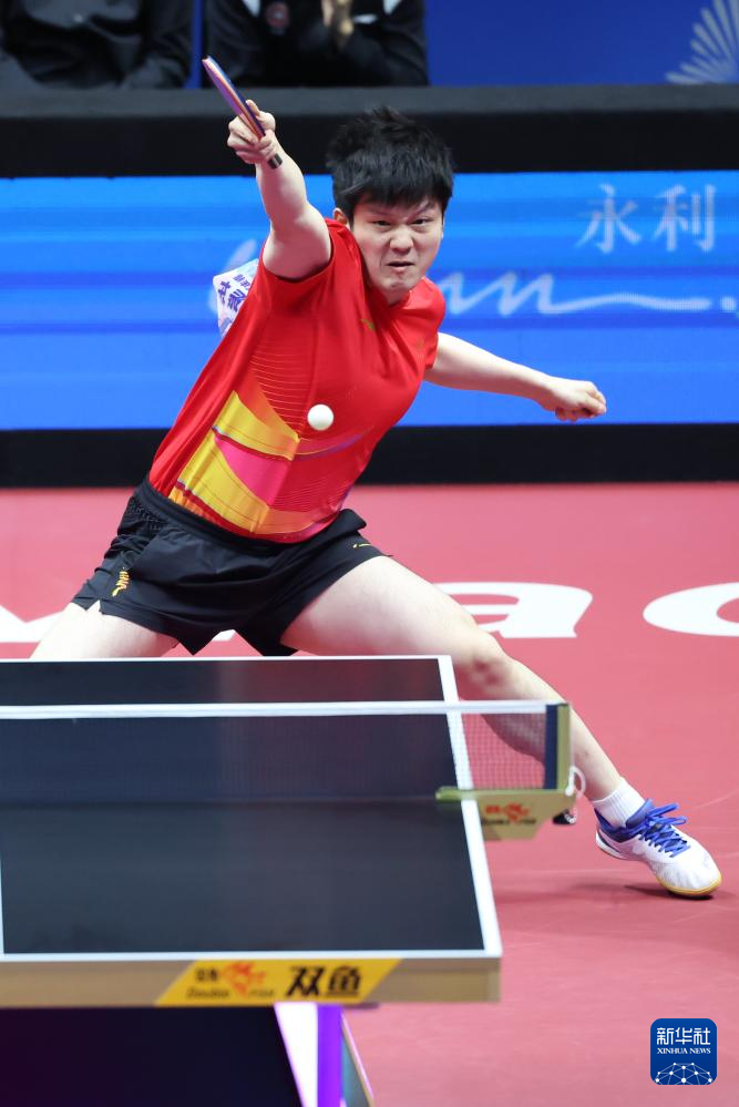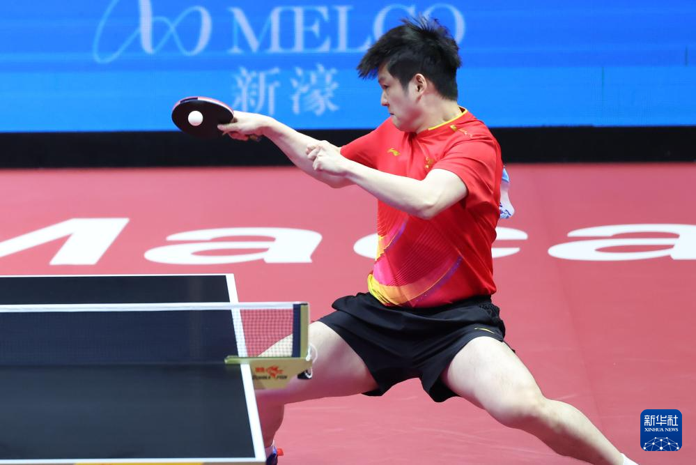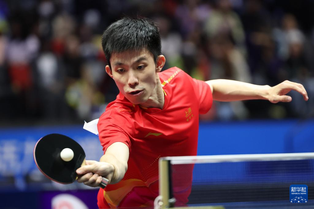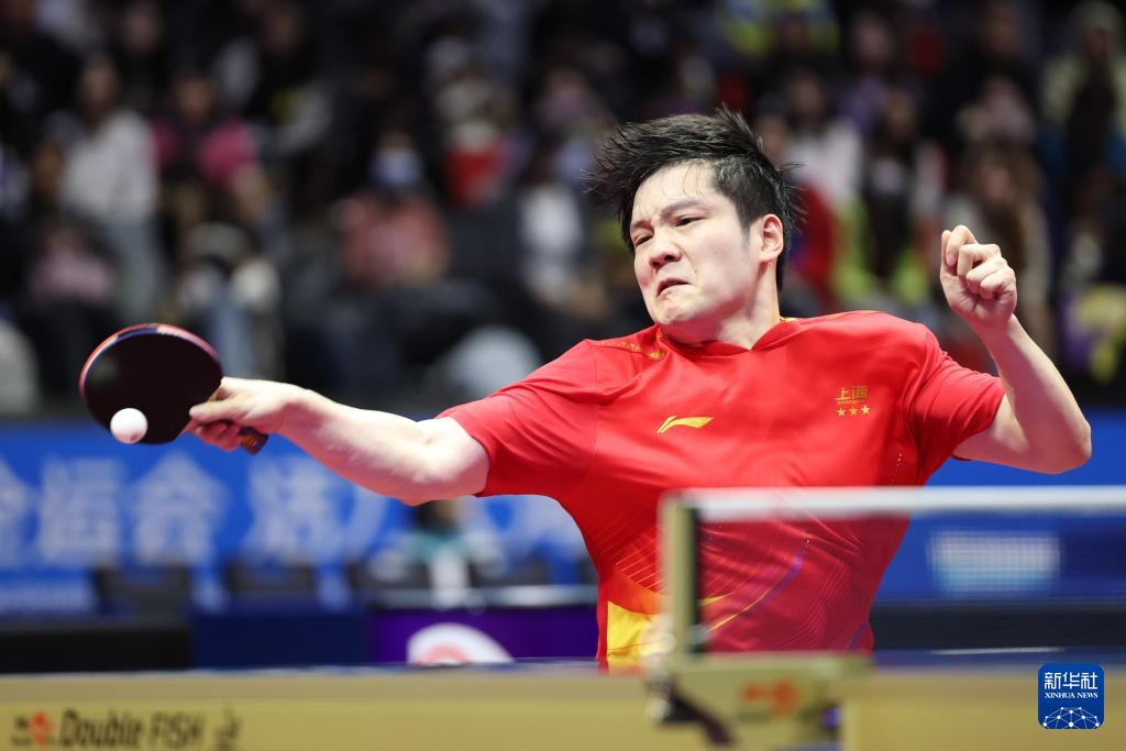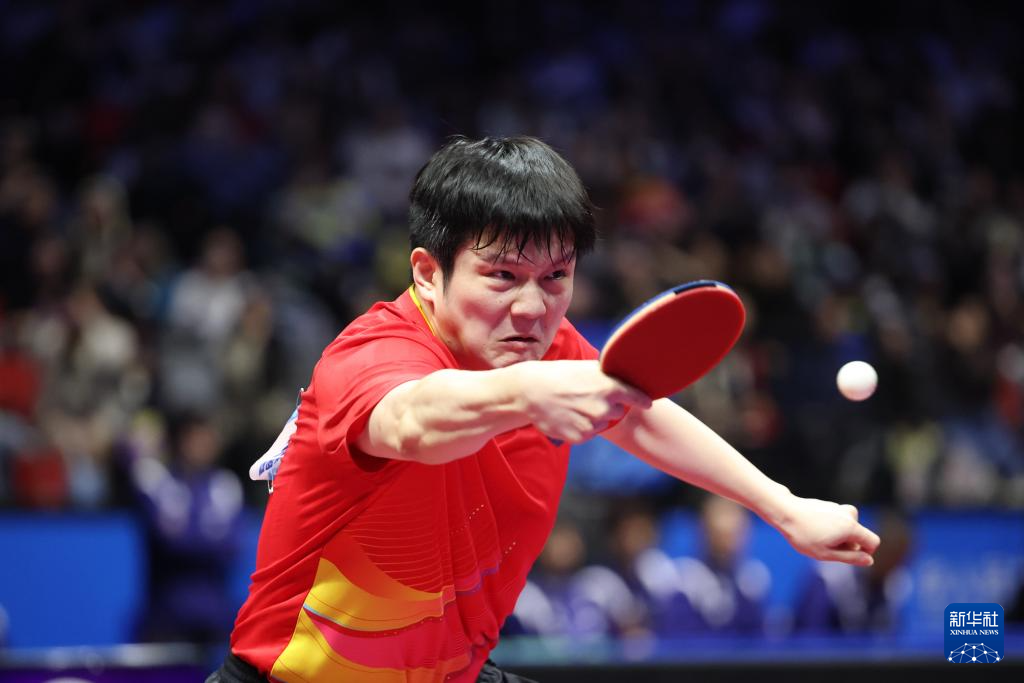 11月18日,上海队选手樊振东在比赛中回球。他3比2战胜河北队梁靖崑。