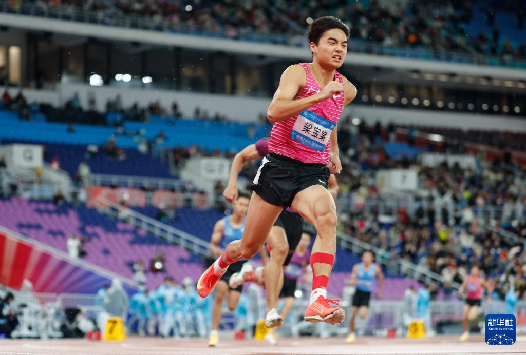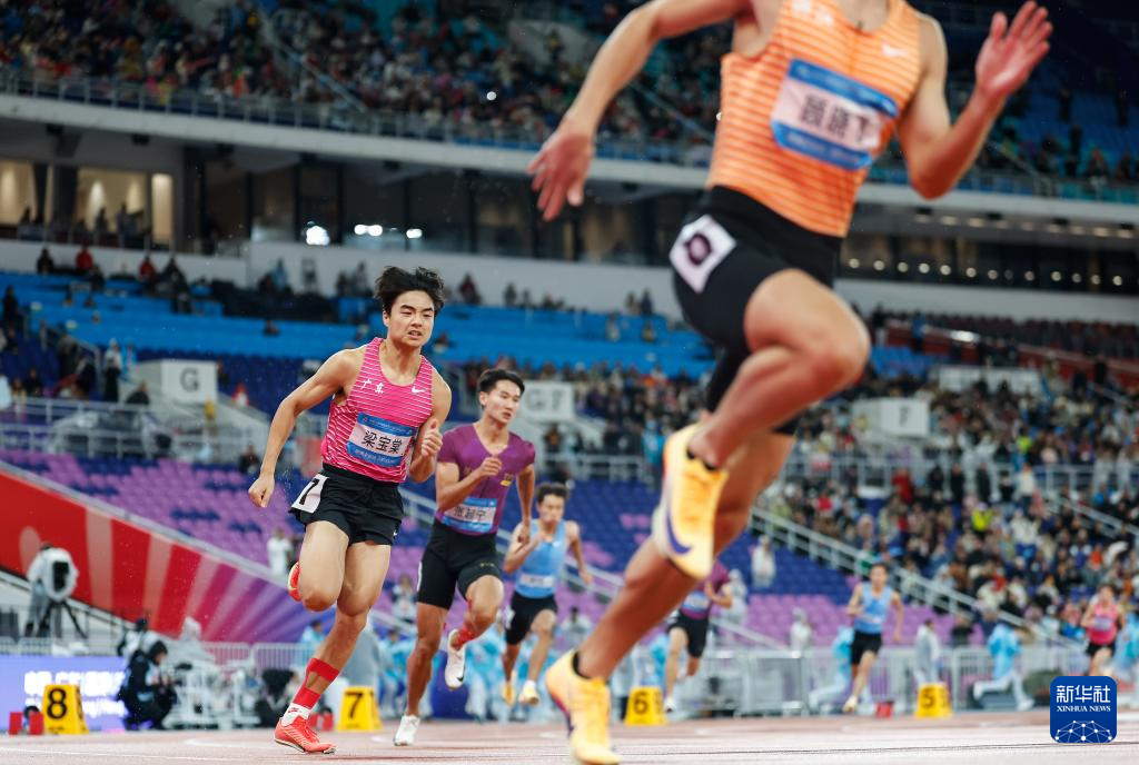 11月18日,广东队选手梁宝棠(左一)在比赛中起跑。