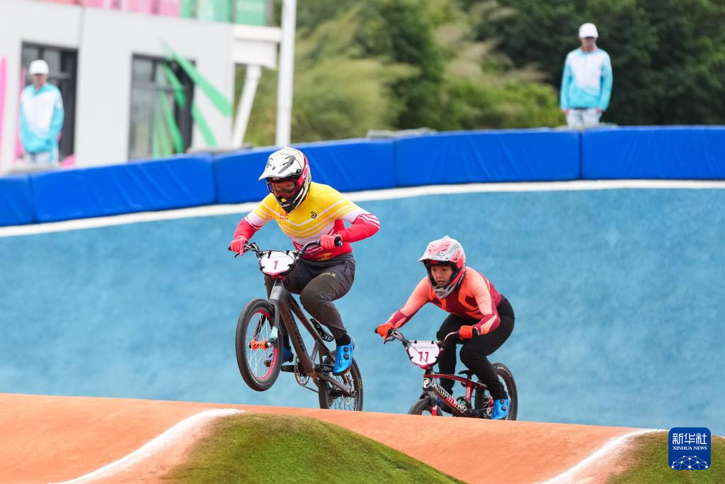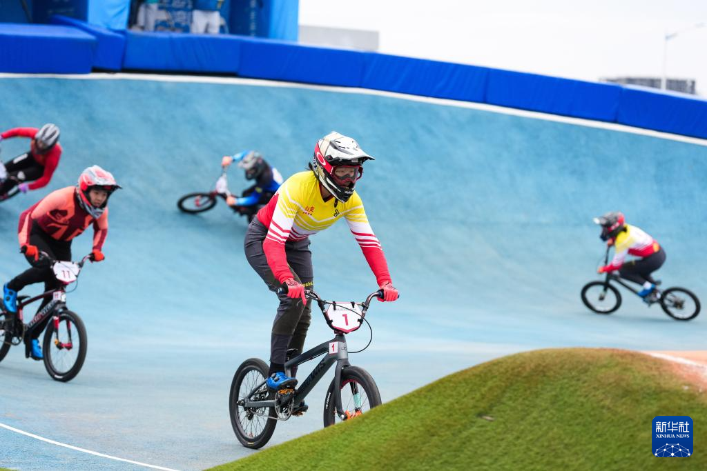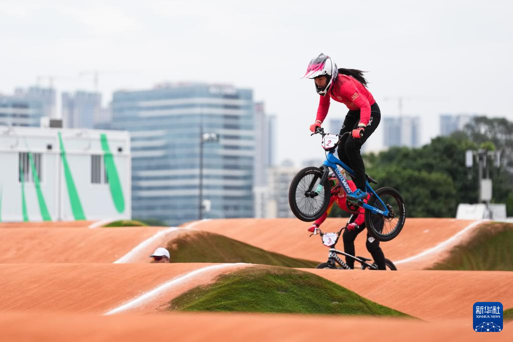 当日,第十五届全国运动会女子竞速小轮车半决赛在深圳举行。
