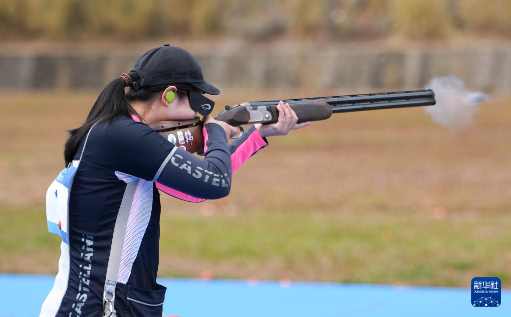 当日,第十五届全国运动会射击项目女子飞碟多向决赛在广州举行。