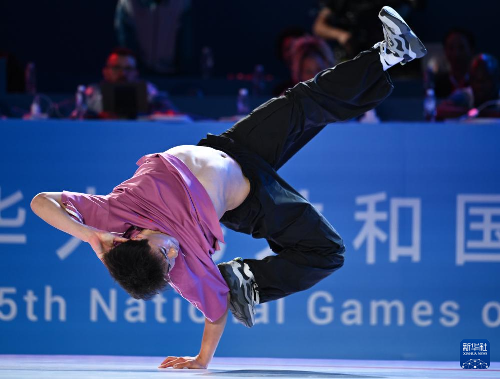 当日,第十五届全国运动会霹雳舞项目男子组半决赛在广州举行。