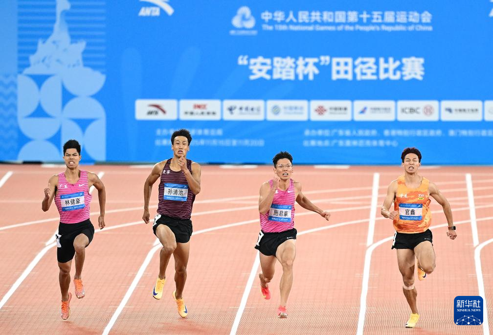 当日,第十五届全国运动会田径项目男子200米决赛在广州举行。