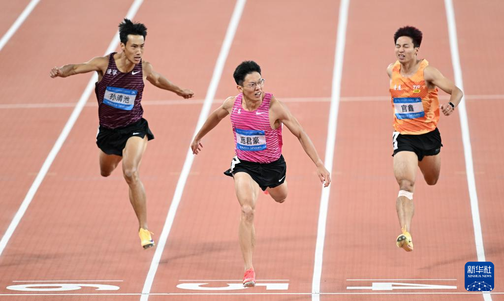 当日,在广州举行的第十五届全国运动会田径项目男子200米决赛中,广东队选手施君豪夺冠。