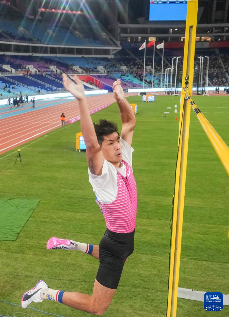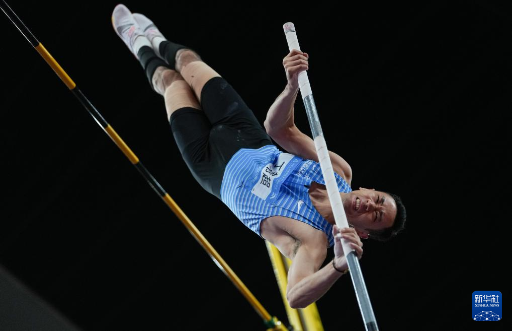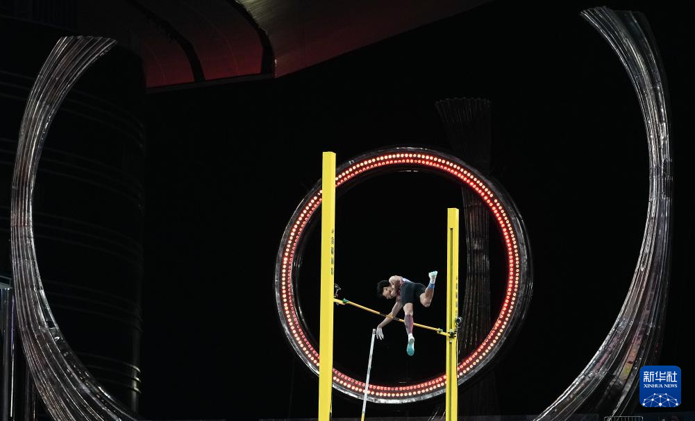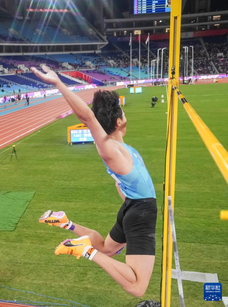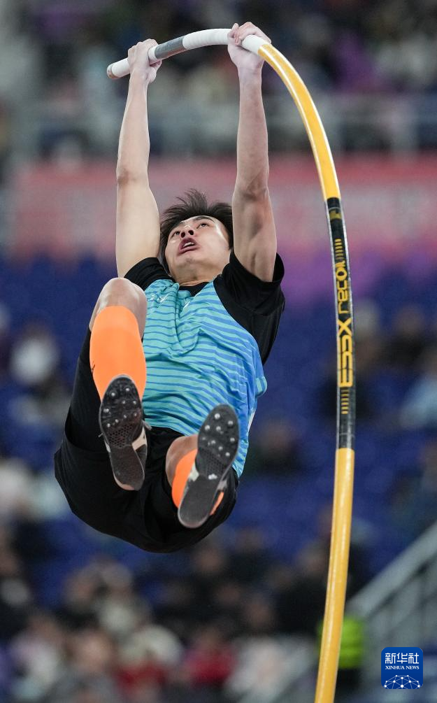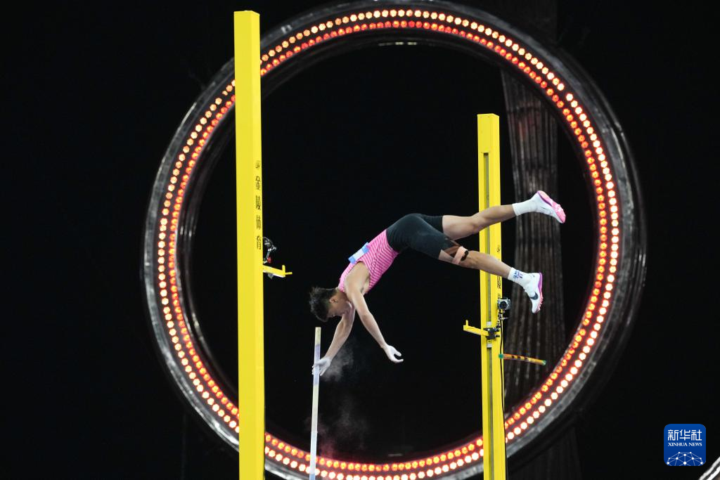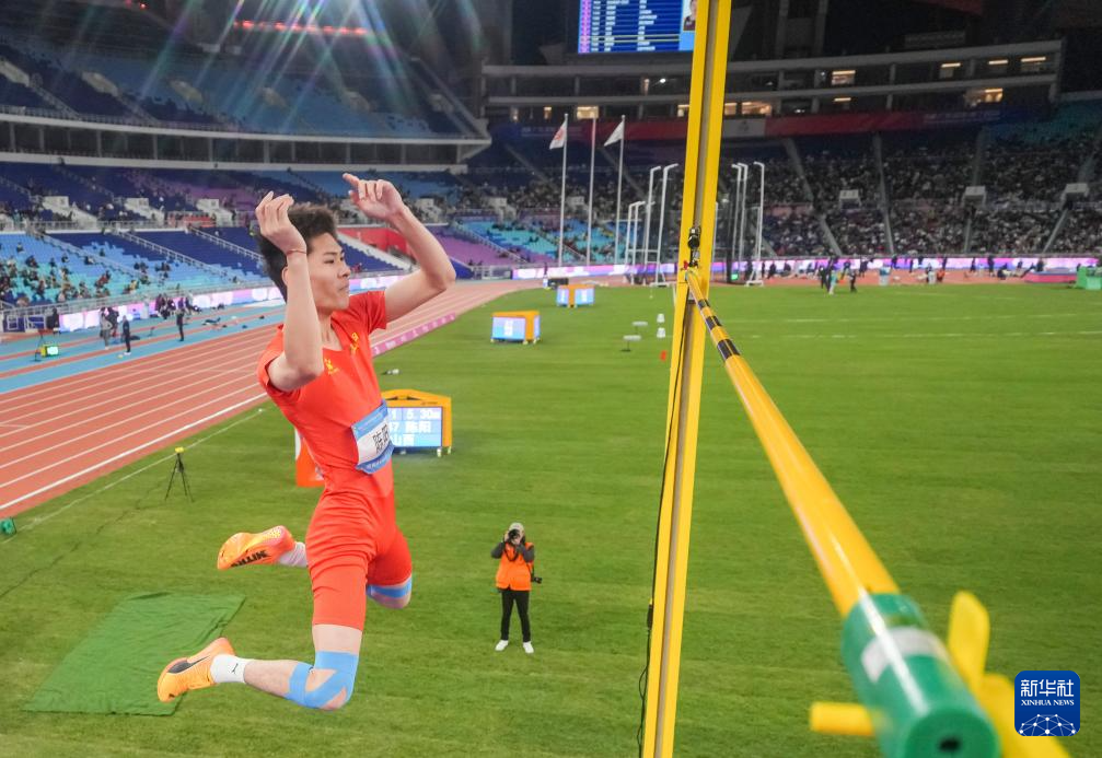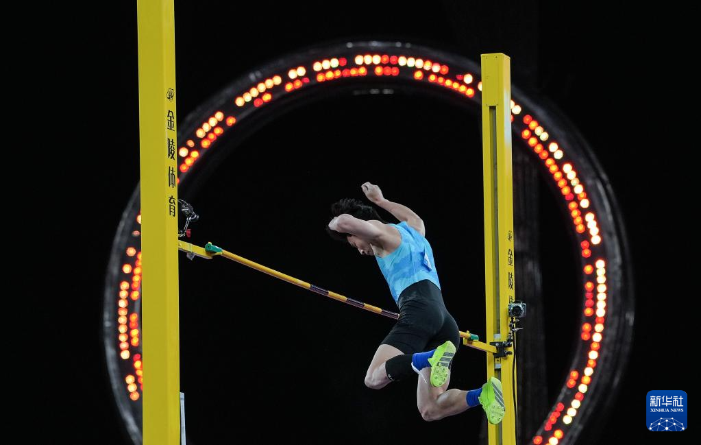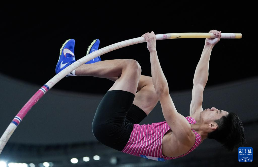 当日,第十五届全国运动会田径项目男子撑杆跳高决赛在广州举行。