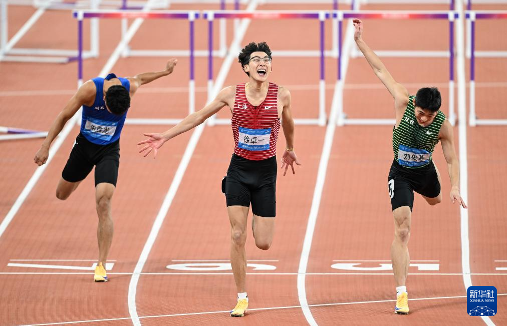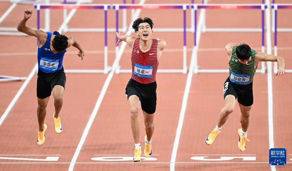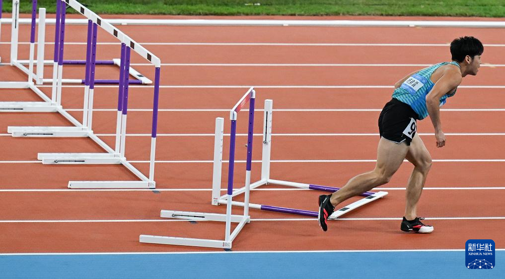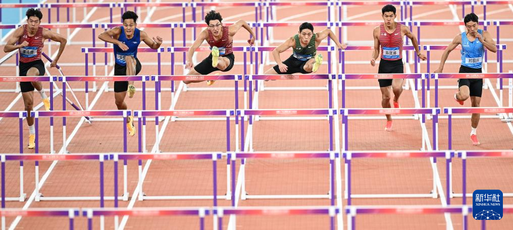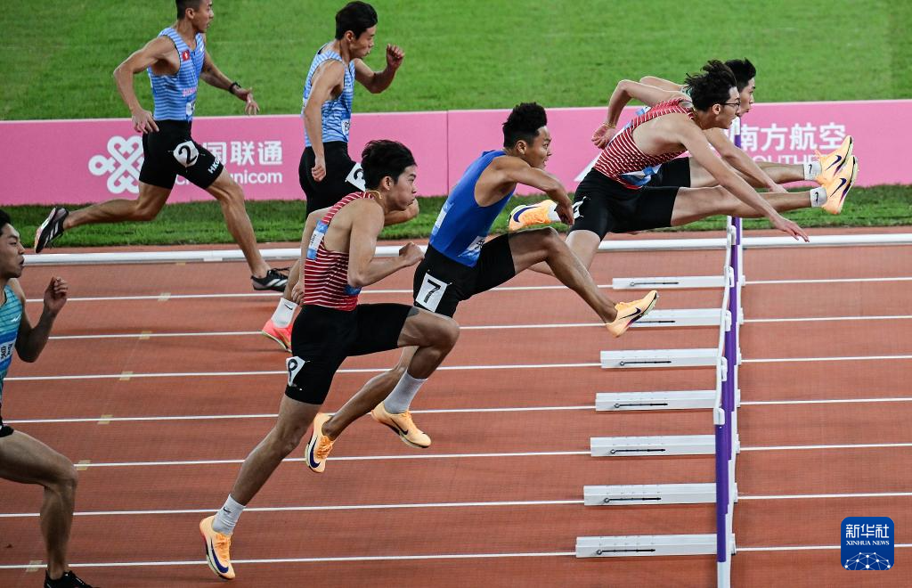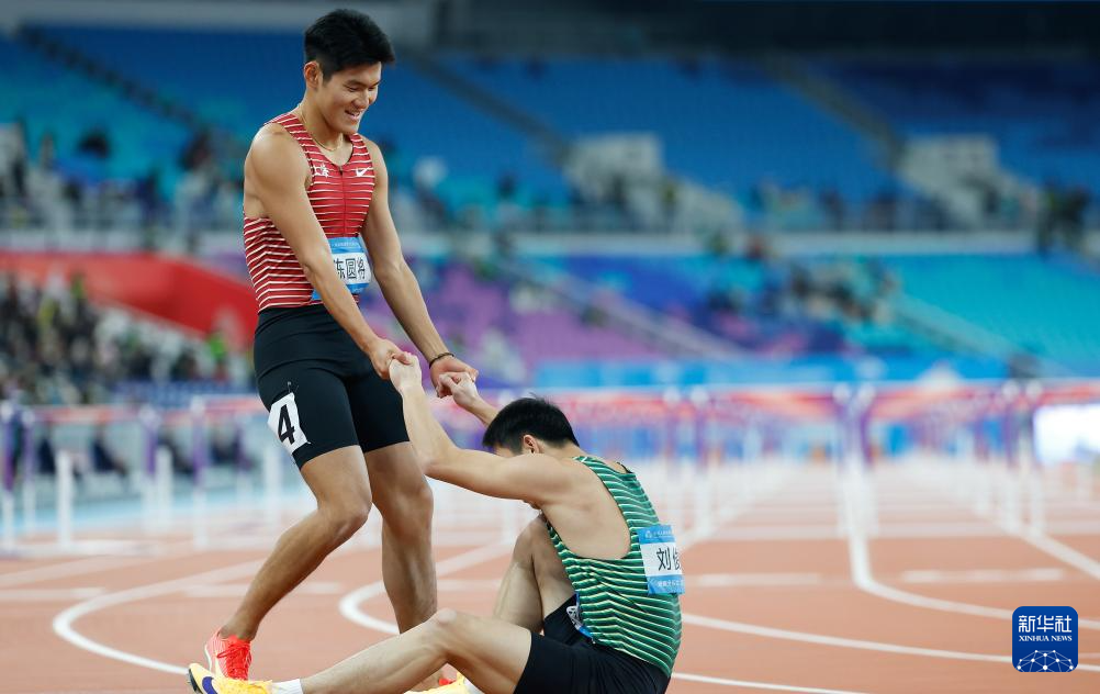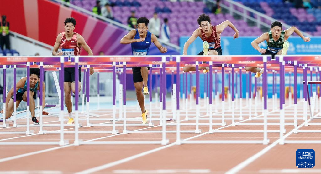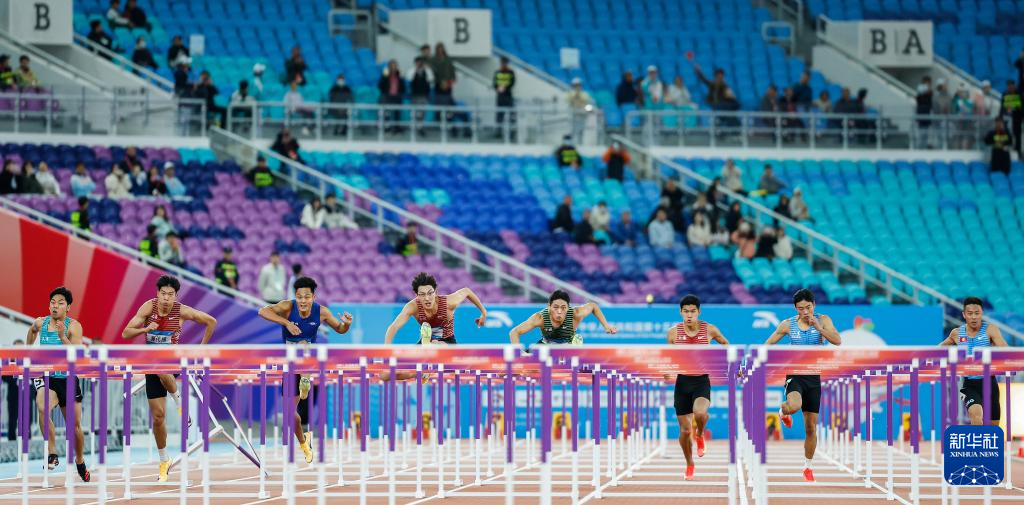 当日,第十五届全国运动会田径项目男子110米栏决赛在广州举行。