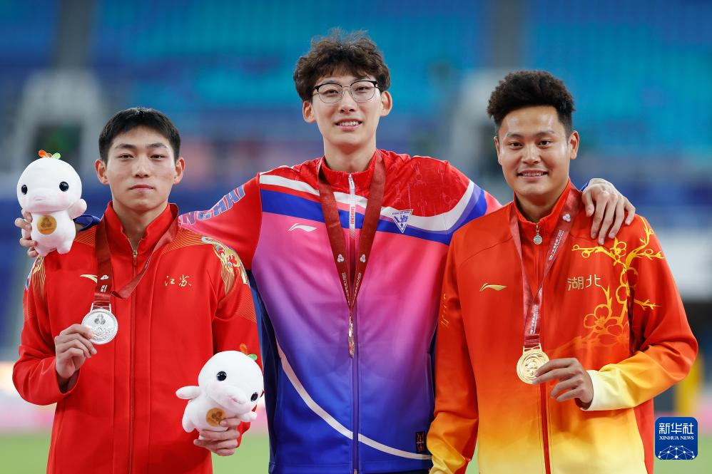 11月19日,获得冠军的上海队选手徐卓一(中)、获得亚军的江苏队选手刘俊茜(左)、获得季军的湖北队选手朱胜龙在颁奖仪式上合影。