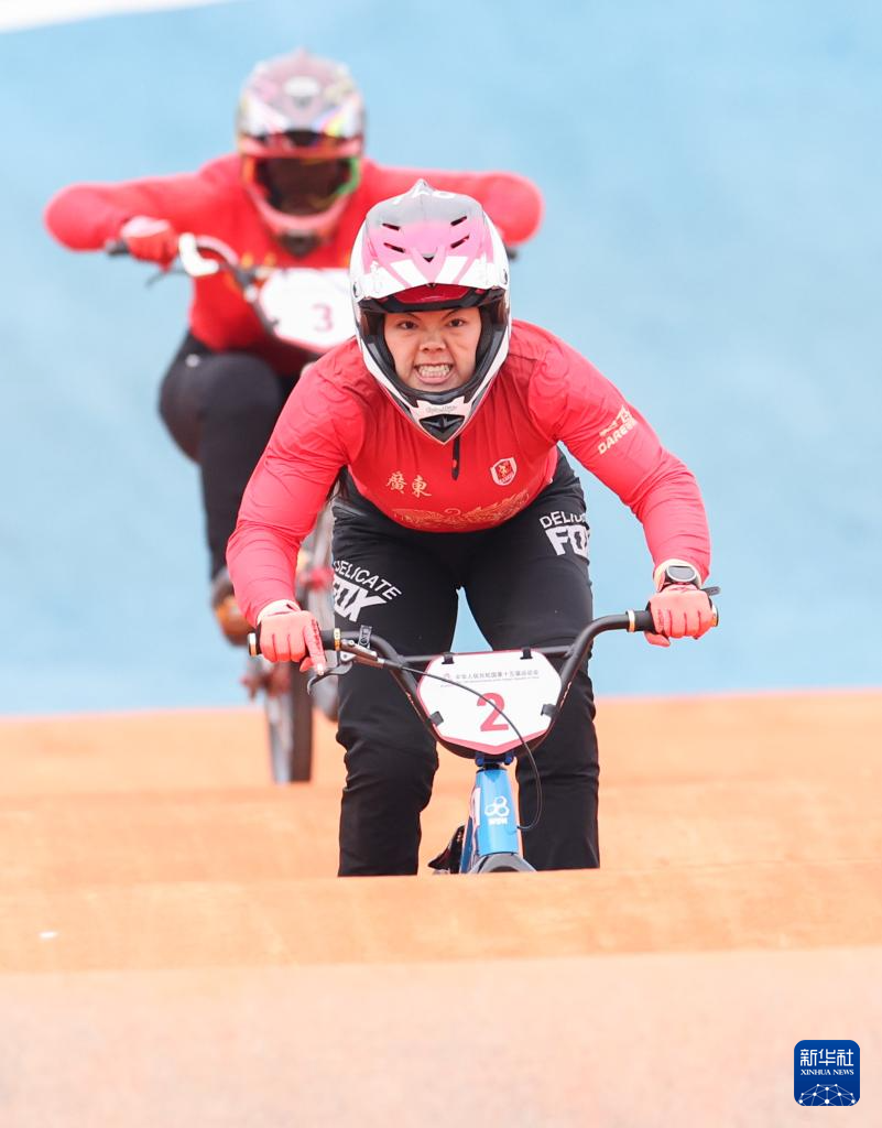 当日,第十五届全国运动会竞速小轮车项目女子竞速赛决赛在广东深圳举行。