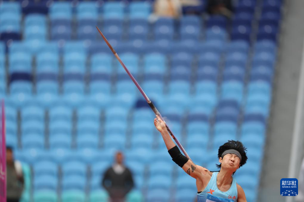 当日,第十五届全国运动会田径项目女子七项全能标枪比赛在广州举行。
