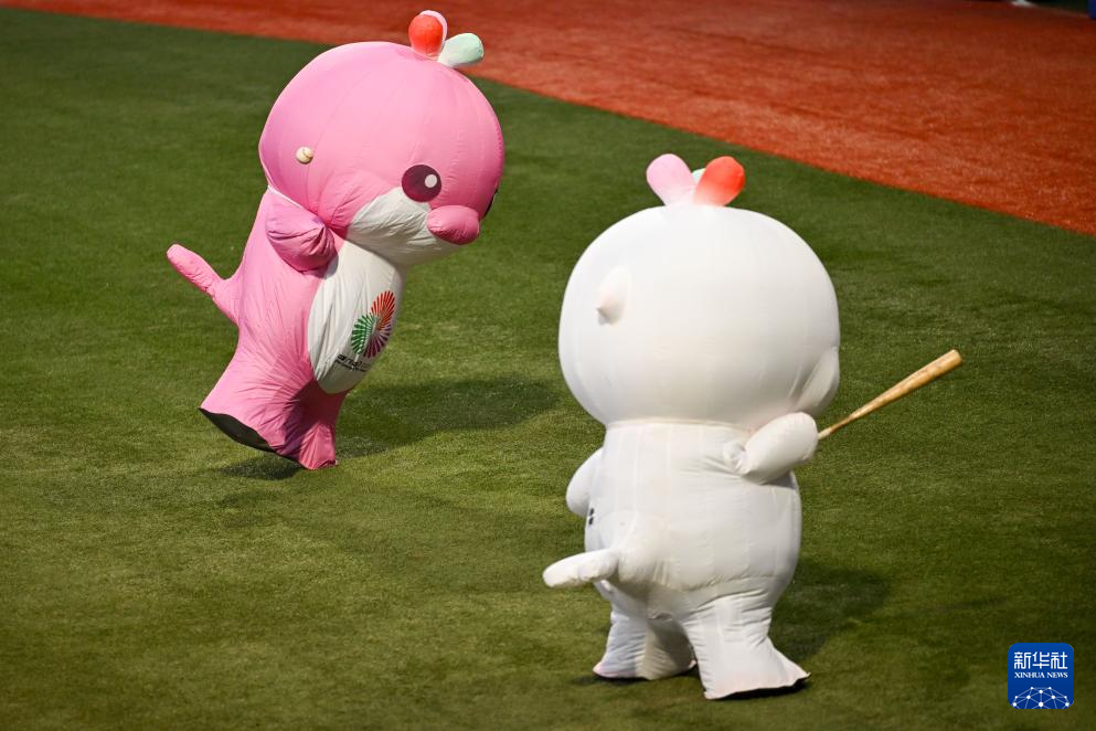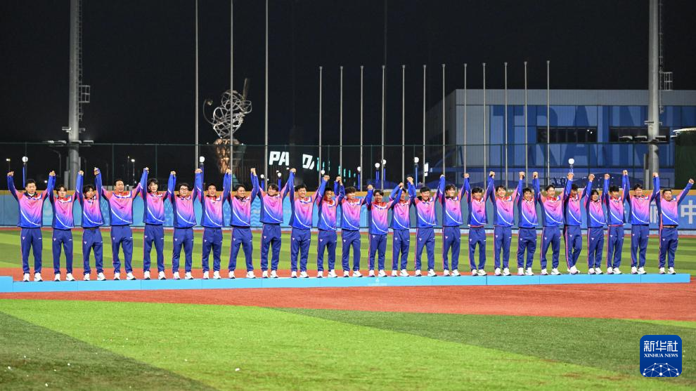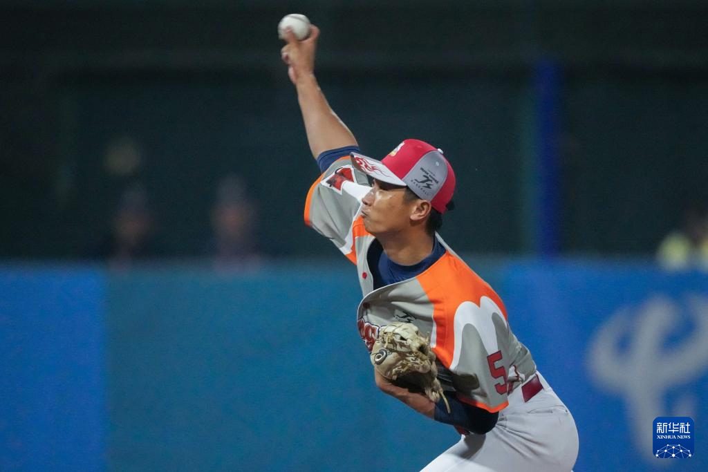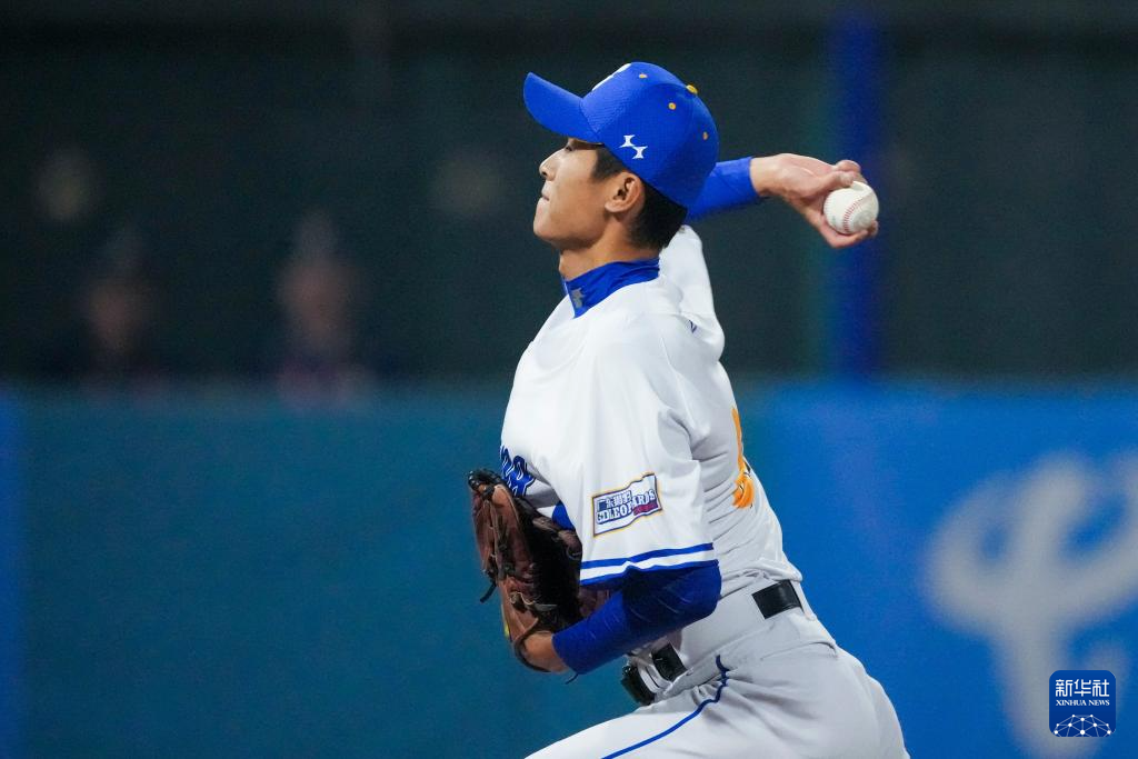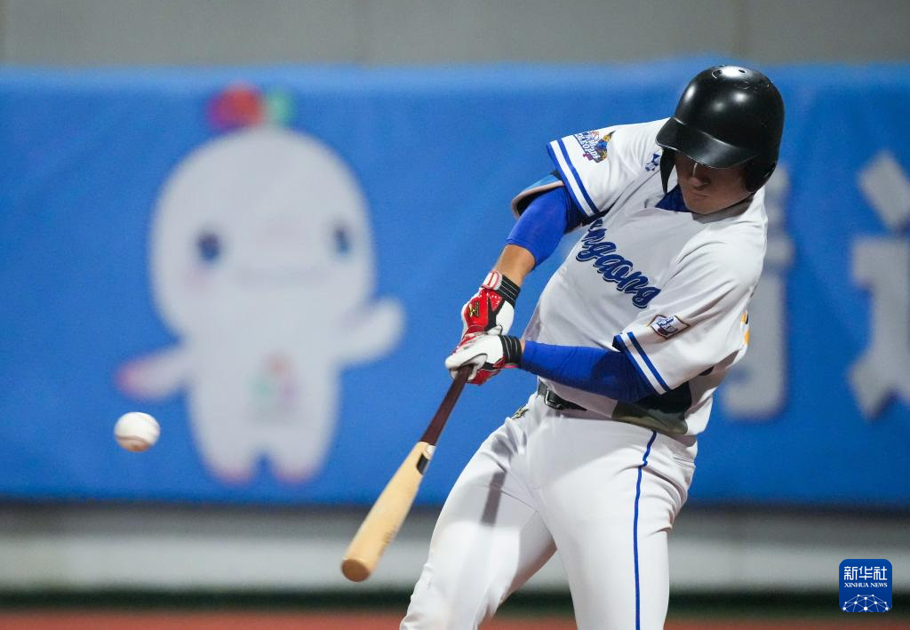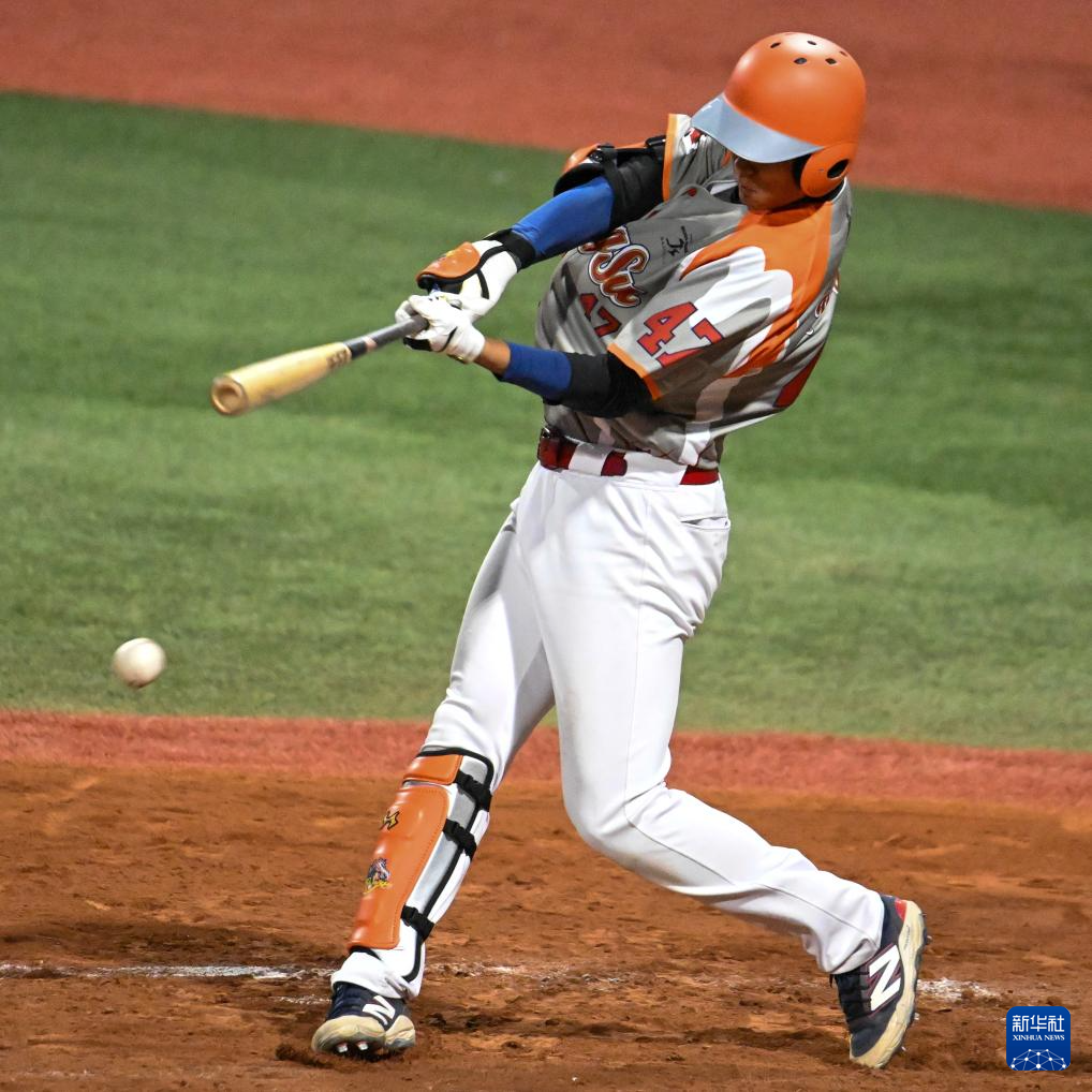 11月20日,江苏队球员庆祝队友陈晨(左一)在比赛中打出本垒打。