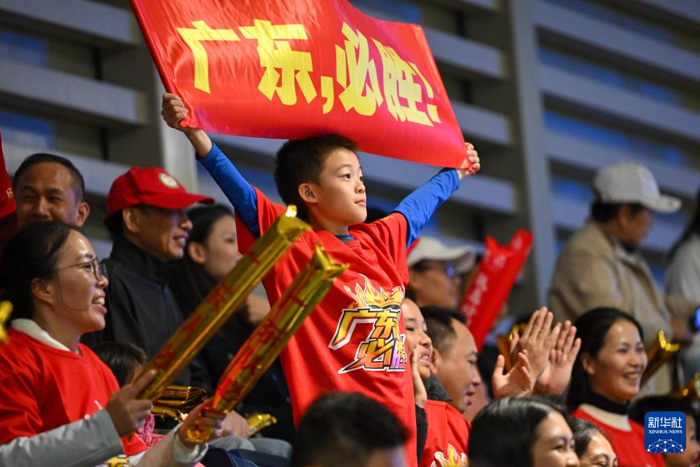 11月20日,广东队球员陈燕鹏在比赛中击球。