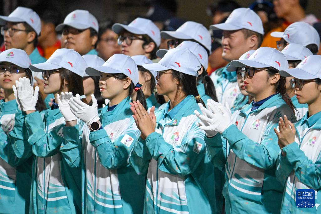 11月20日,志愿者在颁奖仪式上为运动员鼓掌。