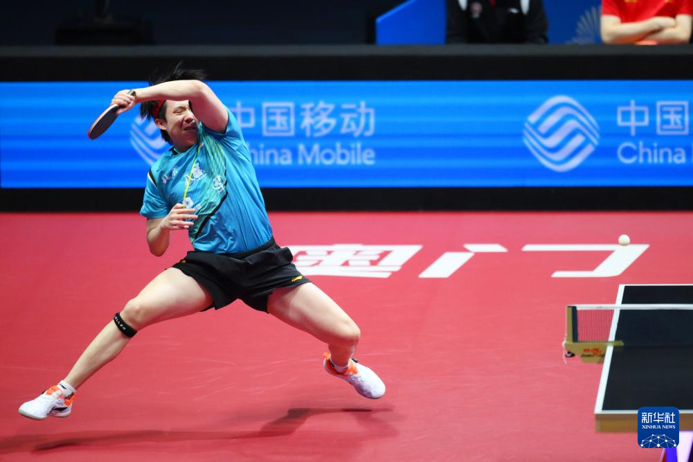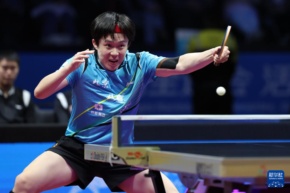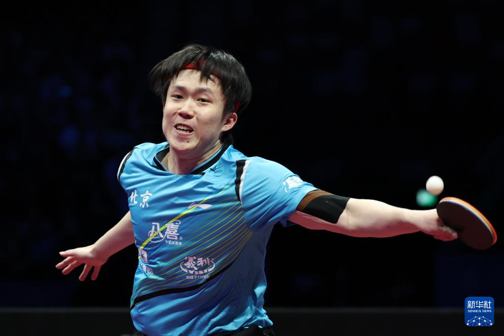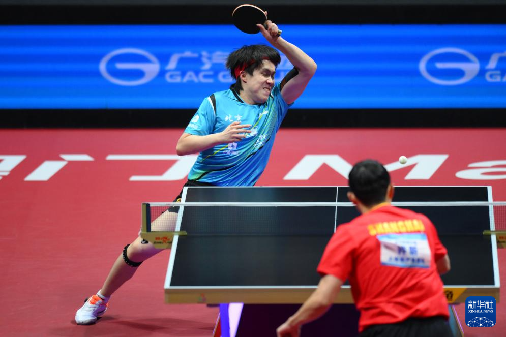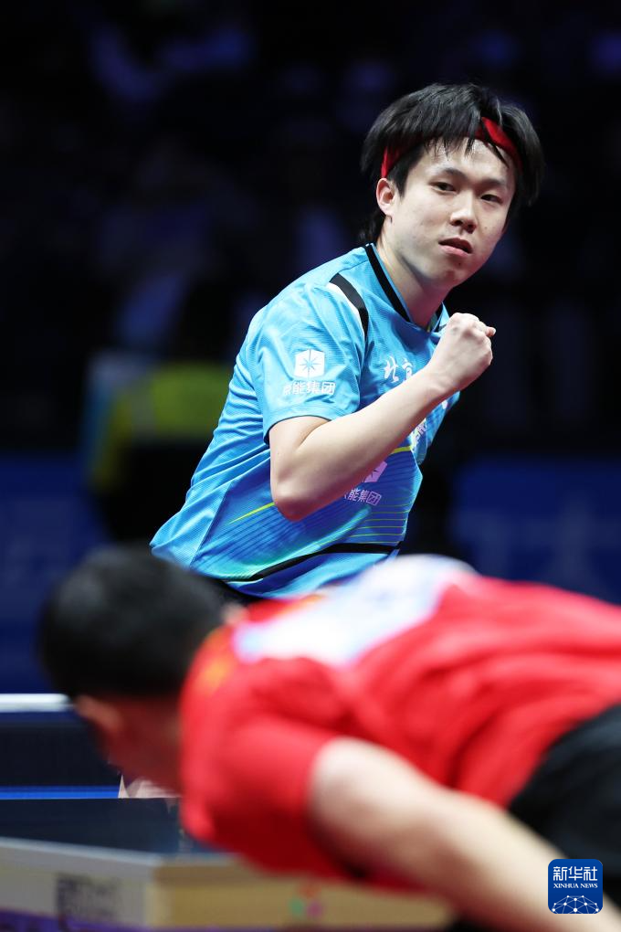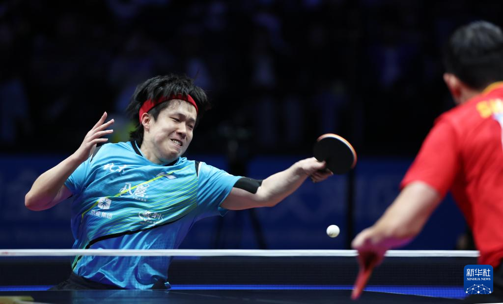 11月20日,北京队选手王楚钦在男单比赛中回球。他3比0战胜上海队选手许昕。